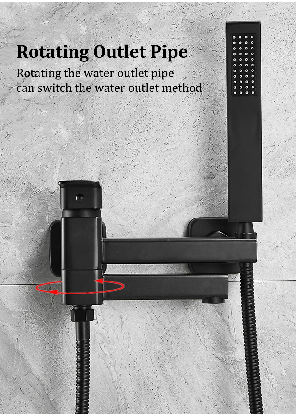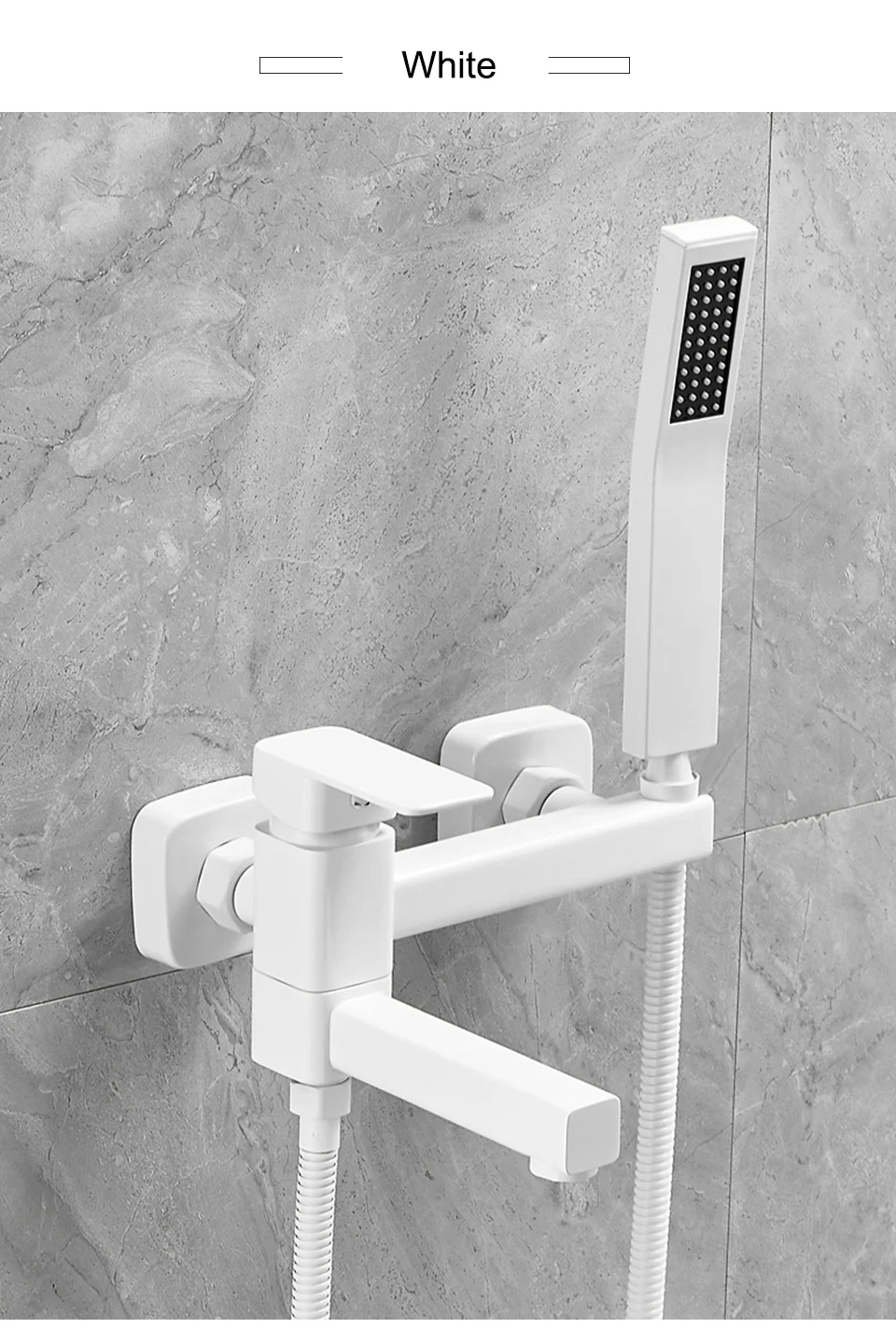 Черный смеситель для ванны с поворотным носиком для ванны, латунный Белый настенный смеситель для ванной комнаты, смеситель для душа, золотой полный набор для душа для туалета