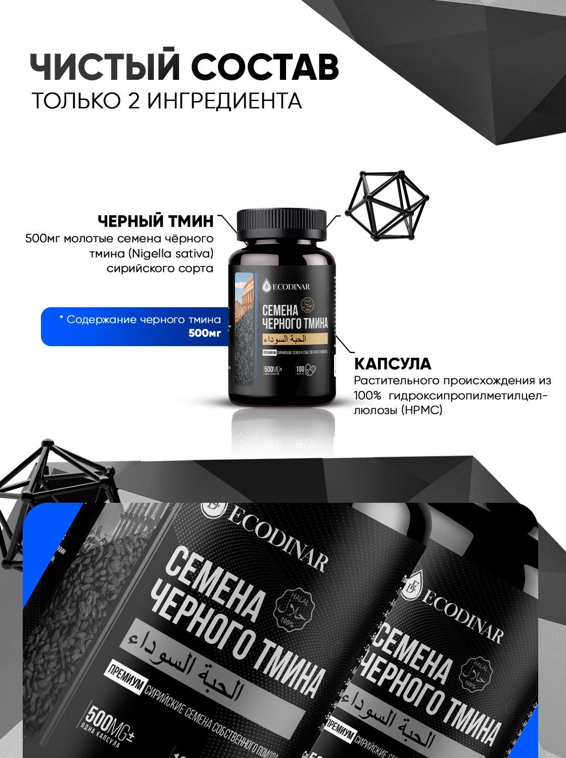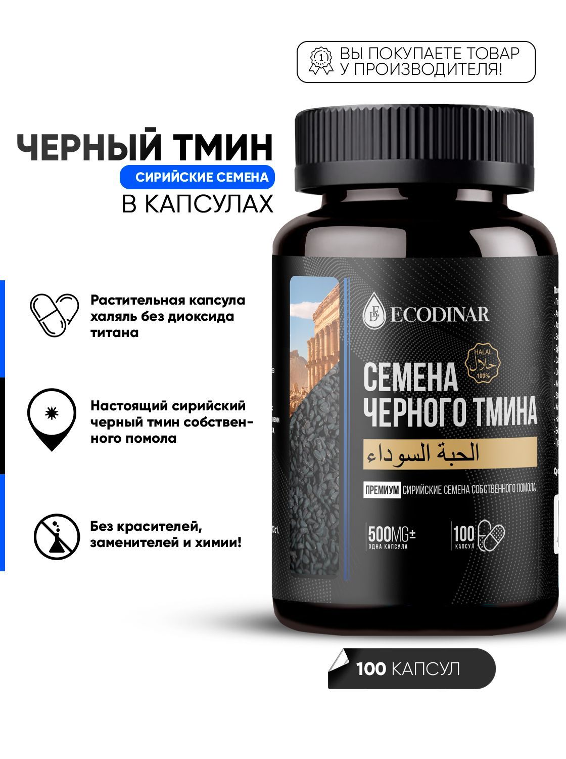 Черный тмин молотый сирийские семена в капсулах 460 мг от Экодинар 100 капсул, ECODINAR