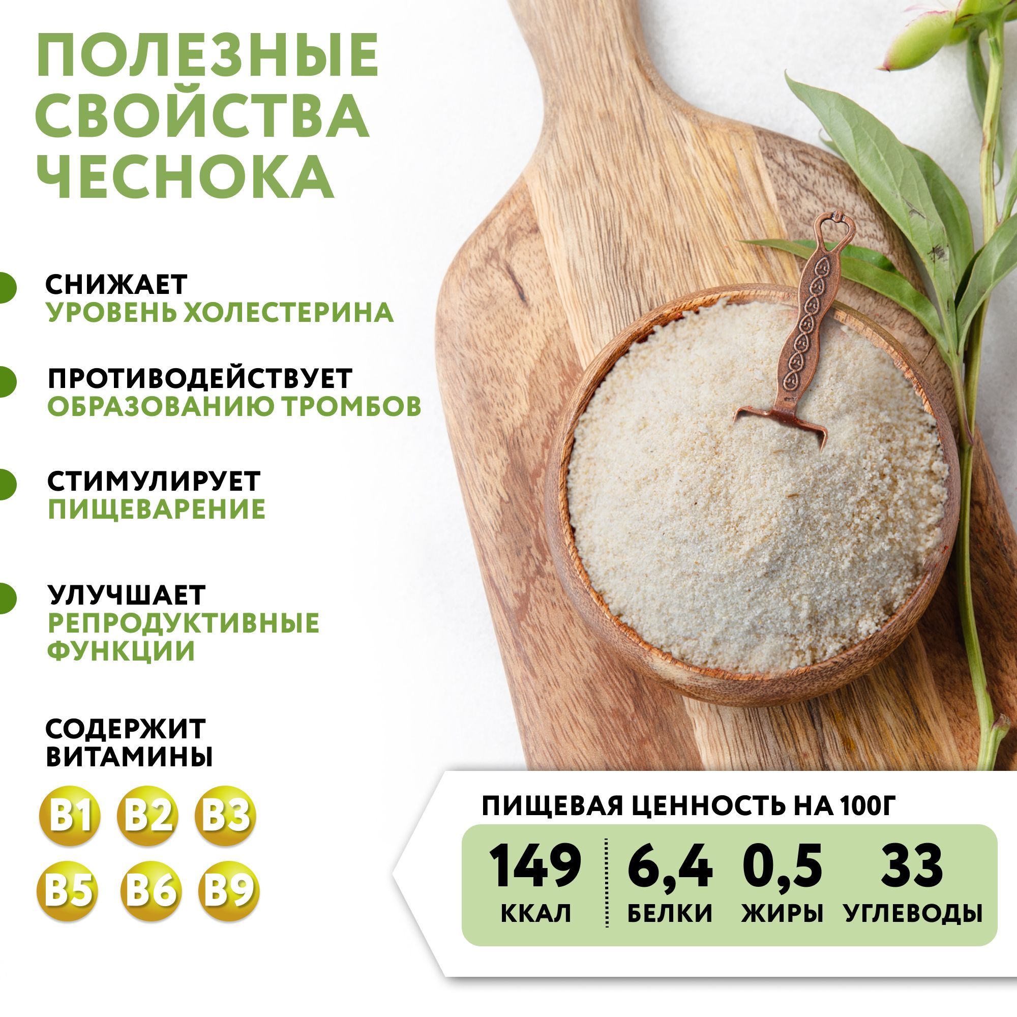 Описание: Сушёный чеснок — универсальная приправа, ароматная и вкусная, по свойствам не уступающая свежему чесноку. При этом её можно дольше хранить и экономнее использовать. В сухом виде чеснок обладает более тонким и «спокойным» вкусом и не вызывает жжения во рту.чеснок в тарелкеНаш продукт производят в России.Гранулы чеснока получают путем дробления сушеного чеснока до частиц. Качественная переработка чеснока позволяет полностью сохранить содержащиеся в чесноке эфирные масла, а также его питательные, целебные и вкусовые свойства.чеснок в мискечеснок в мискеПрименение сушеного чеснока в кулинарии:Сушеному чесноку по праву принадлежит первое место в списке используемых приправ для готовки блюд: