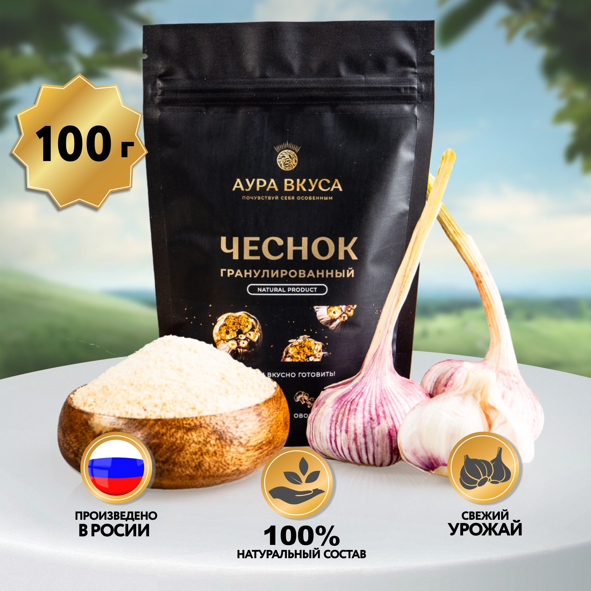 Чеснок Натуральный Сушеный Молотый 100 грамм. Аура Вкуса (Измельченные Зубчики, Чесночная Добавка Сухая Рубленая, Allium Sativum), Приправа (специя) для Первых, Вторых Блюд, Россия