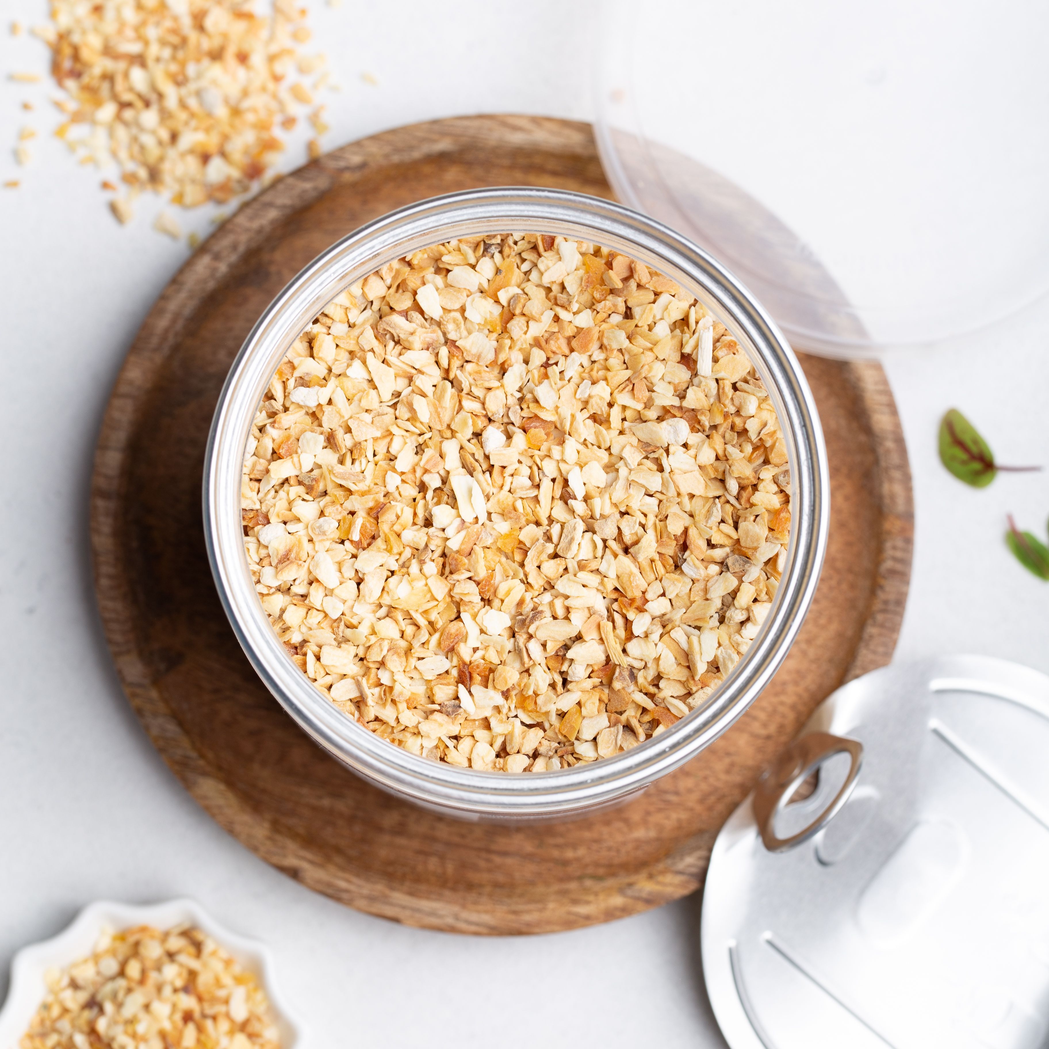 Описание: Чеснок, с его характерным ароматом и крепким вкусом, является любимым ингредиентом в различных кухнях мира. Одним из существенных преимуществ использования сушеного чеснока в качестве приправы является его концентрированный вкусовой профиль. Процесс сушки усиливает естественную остроту и земляные ноты чеснока, создавая более насыщенный вкус по сравнению со свежим чесноком. В результате даже небольшое количество сушеного чеснока может придать блюду особый аромат, улучшая общее вкусовое впечатление. Применение сушеного чеснока на кухне практически безгранично. Это универсальная приправа, которую можно использовать как в сухих, так и во влажных блюдах.