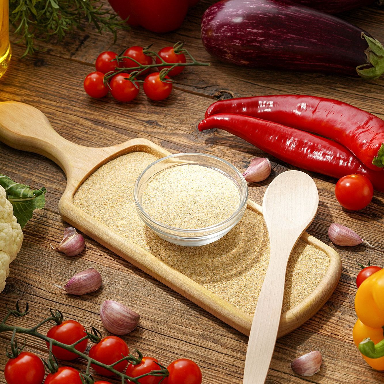 Описание: Чеснок сушеный в гранулах изготавливается из свежих зубчиков чеснока, которые высушиваются, а затем измельчаются в гранулы. Чеснок производится в Китае и Индии. Сушеный чеснок можно использовать в различных пикантных блюдах для придания вкуса и аромата. Его добавляют для заправки мяса, овощей, супов, соусов и маринадов. Чеснок содержит соединения, такие как аллицин, которые, как было доказано, обладают антибактериальными и противовирусными свойствами. Это также может помочь снизить кровяное давление и уровень холестерина. Этот ингредиент используется как универсальная приправа для блюд из макарон, картофеля фри, запеченных овощей, приправах и специях к мясу, заправки для салатов.