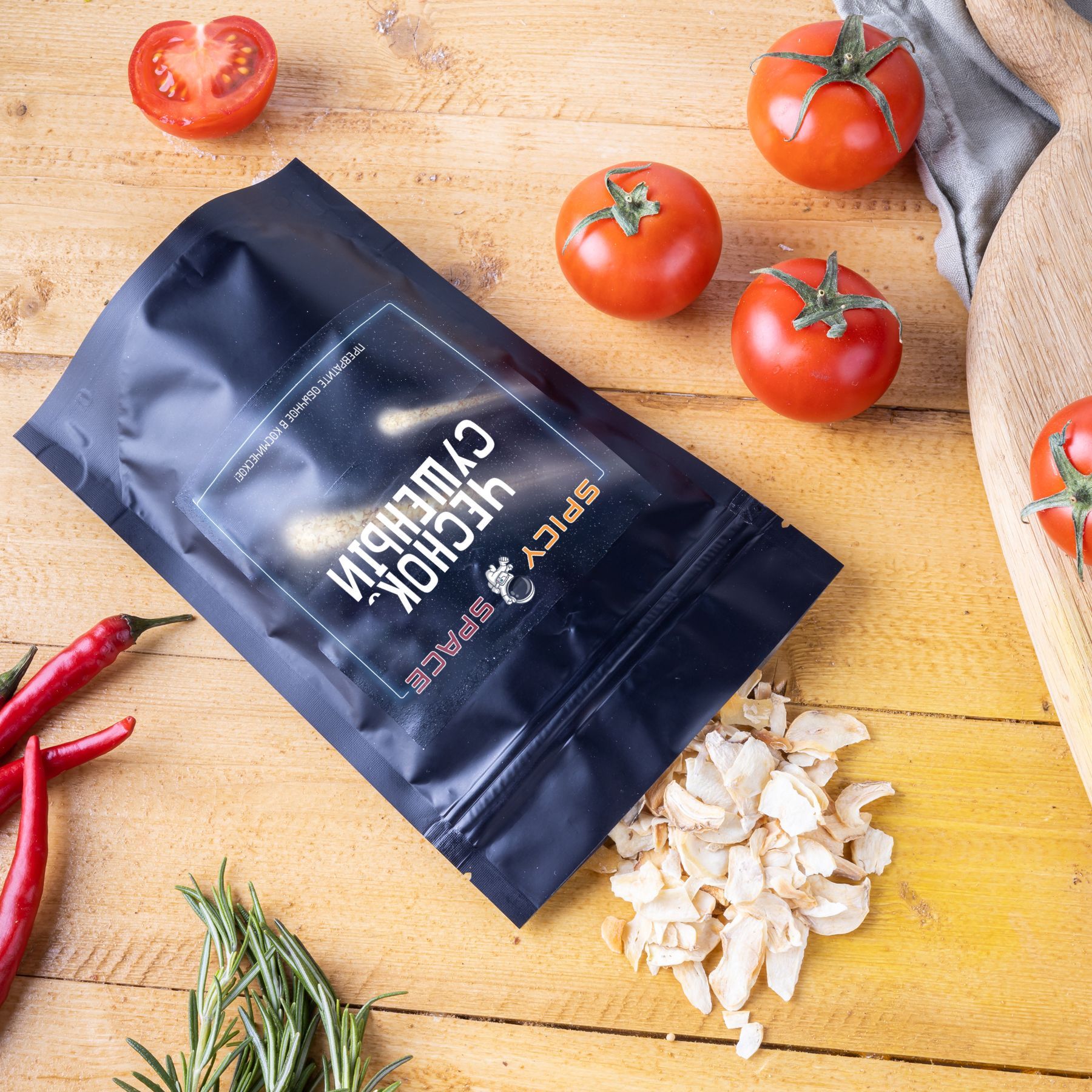 Сушеный чеснок удобен в использовании, поскольку его можно добавить в любое блюдо, где не требуется свежий чеснок. Он сохраняет свой аромат и вкус в течение длительного времени, что позволяет Вам наслаждаться неповторимым вкусом чеснока в любое время года. Включите сушеный чеснок в свой рацион и попробуйте его множество применений, чтобы создать настоящий кулинарный шедевр.Наши специи в металлизированных дой-паках!Металлизированные дой-паки - это инновационная упаковка для хранения специй, которая имеет ряд преимуществ перед традиционными упаковками. Она представляет собой пакет из пищевого полиэтилена, который покрывается слоем металлизированной пленки, что обеспечивает дополнительную защиту от света, влаги и кислорода.