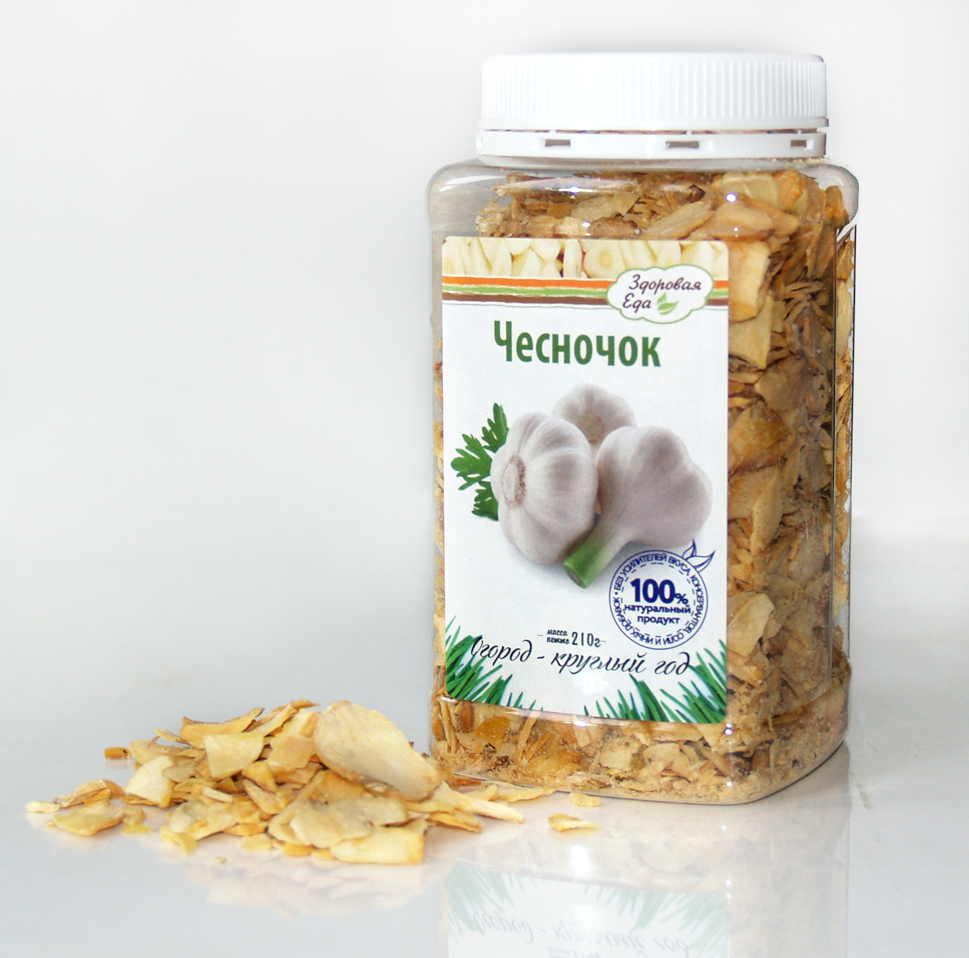 Натуральные сушеные кусочки чеснока – универсальная приправа для очень многих блюд. Она прекрасно оттеняет разные продукты питания, подходит для супа или бульона, рыбы, мяса, рецептов из овощей, может разнообразить постный стол. С ней сочетаются также другие приправы и специи: сухие молотые овощи, черный или копченый перец, гранулированный лук.