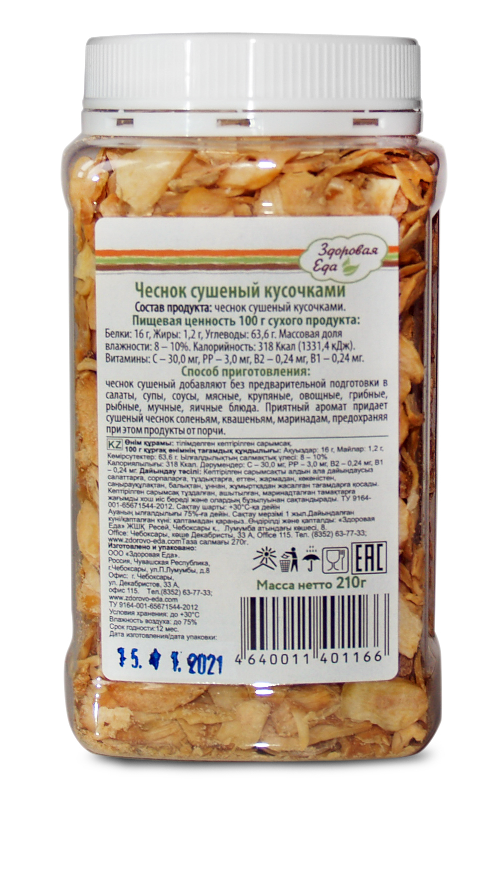 Чеснок Здоровая еда сушеный молотый кусочками 210 г