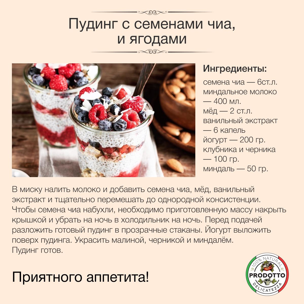 Семена чиа — это необработанная цельнозерновая пища, которая легко усваивается. Благодаря мягкому ореховому вкусу их используют в качестве добавки в различные блюда и напитки.
