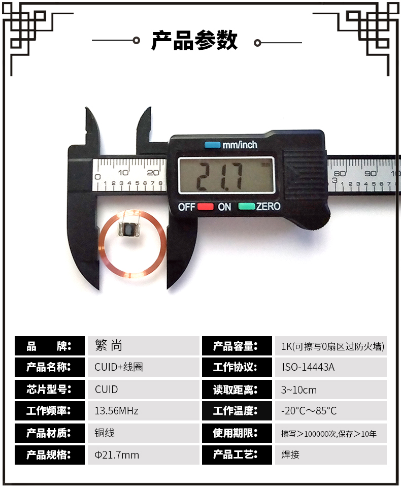 Чип и катушка CUID диаметром 21,7 мм, 13,56 МГц, ISO14443A IC COB и антенна