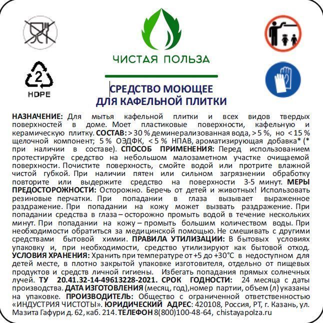 Чистая польза. Средство для кафеля и плитки (0.5л)