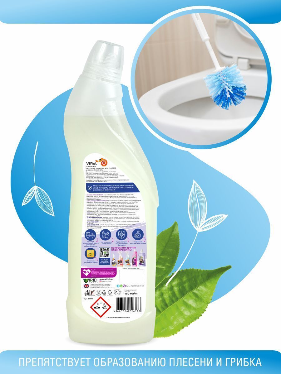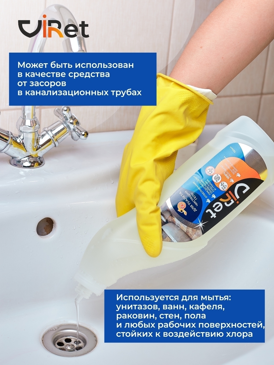 Щелочное чистящее средство для туалета и ванной комнаты - 1шт.