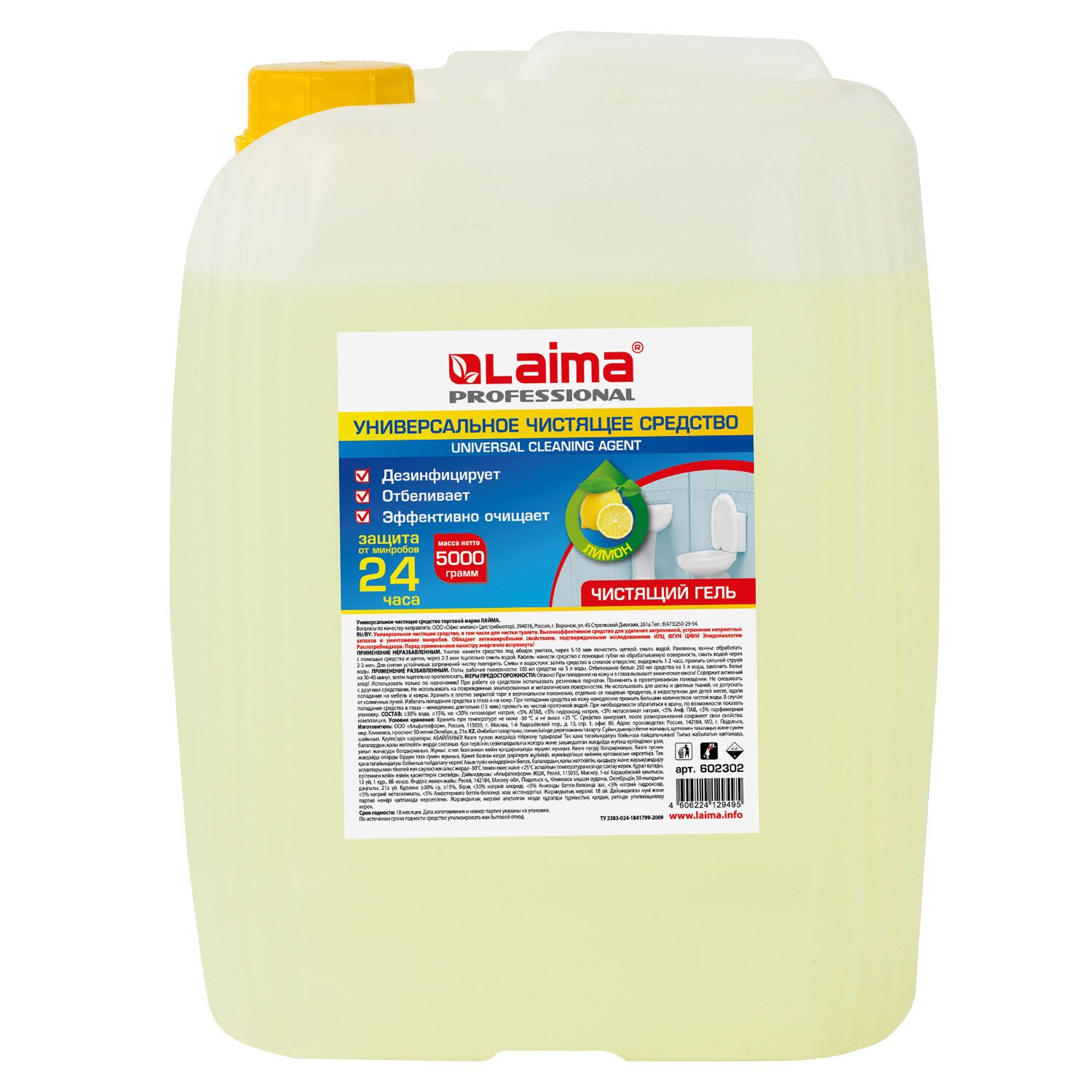 Чистящее средство 5 кг, Лайма Professional "Лимон", дезинфицирующий и отбеливающий эффект