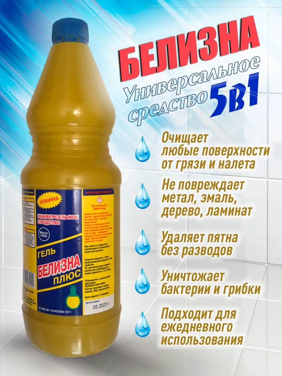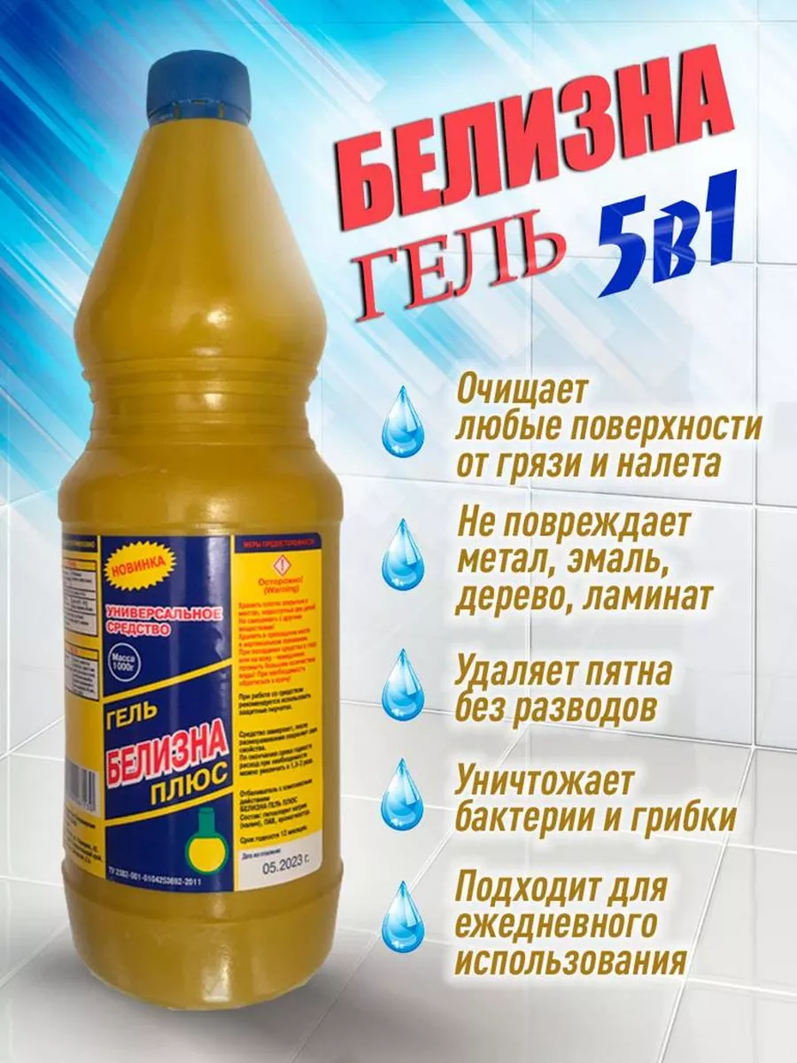Описание: Универсальное моющее средство отлично справляется со сложными загрязнениями. Избавляет от неприятных запахов. Обладает антибактериальным и отбеливающим свойствами. Пятновыводитель для белого. Гелеобразное отбеливающее средство для уборки, предназначено для отбеливания изделий из хлопчатобумажных и льняных тканей, для удаления пятен и мытья эмалированной, фарфоровой, фаянсовой поверхностей, облицовочной плитки, пластика, мусорных ведер, сантехники. Не предназначено для мытья посуды и поверхностей контактирующих с пищей! Применение: для обработки унитазов, раковин, ванн и душевых: равномерно распределить средство по поверхности, оставить на пару минуты, смыть водой. Для труднодоступных участков рекомендуется использовать щетки. Для обработки полов и рабочих поверхностей: развести средство водой в соотношении 50-60 мл на 5 л воды. Нанести раствор на обрабатываемую поверхность. Смыть водой. Состав: гипохлорит натрия (калия),ПАВ. ароматизатор.