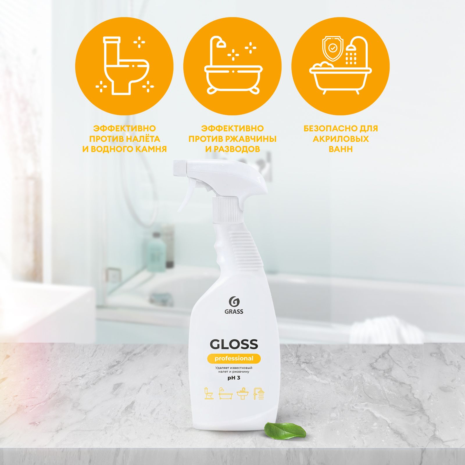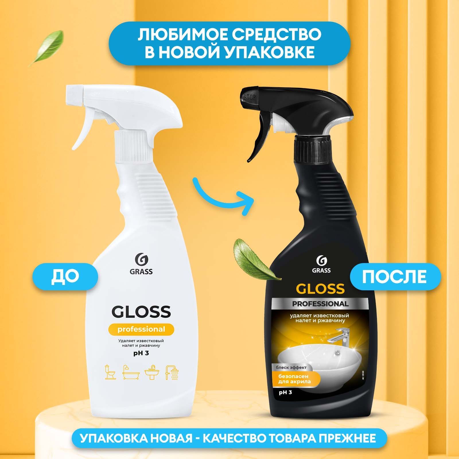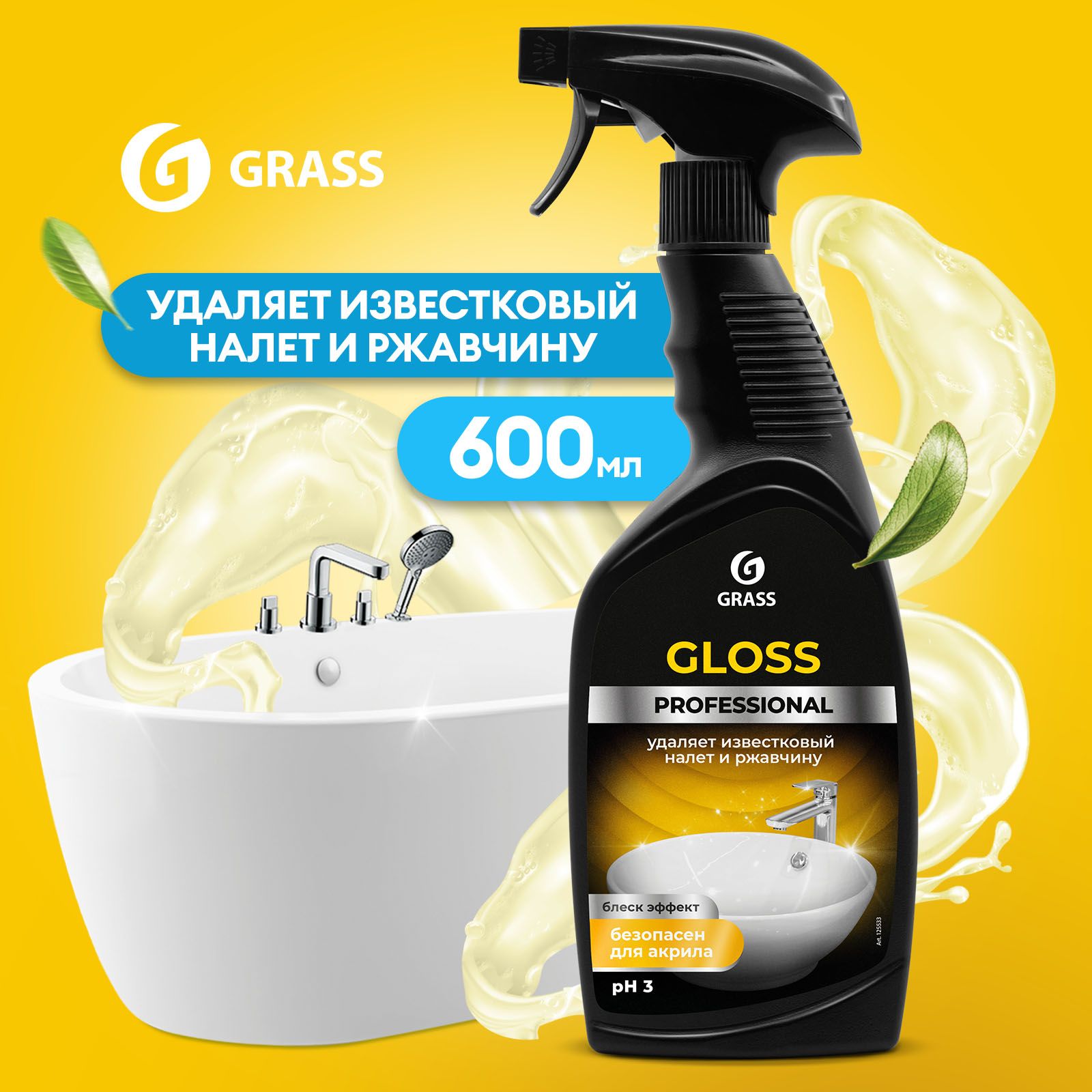 Чистящее средство для акриловых ванн GRASS Gloss Professional 600 мл, средство для сантехники от известкового налета, ржавчины