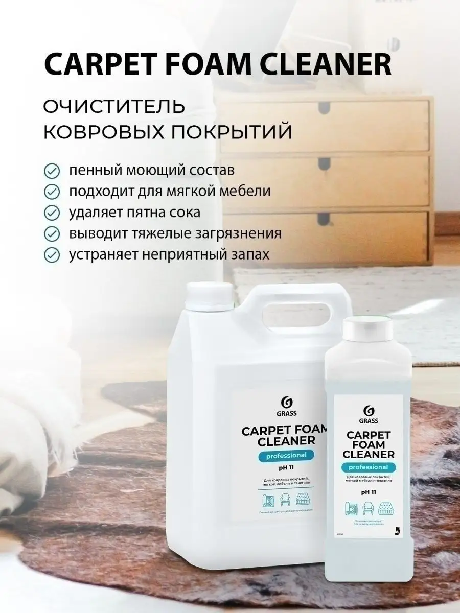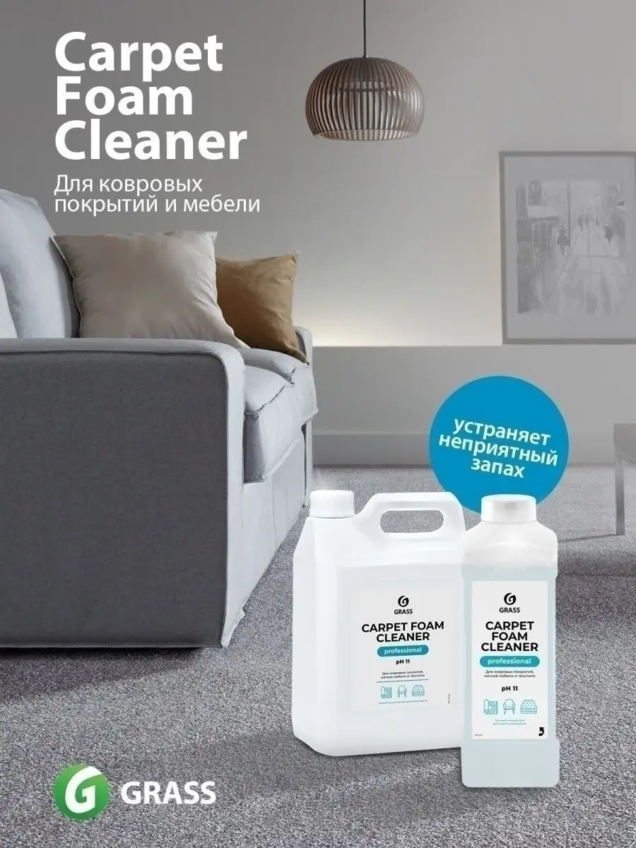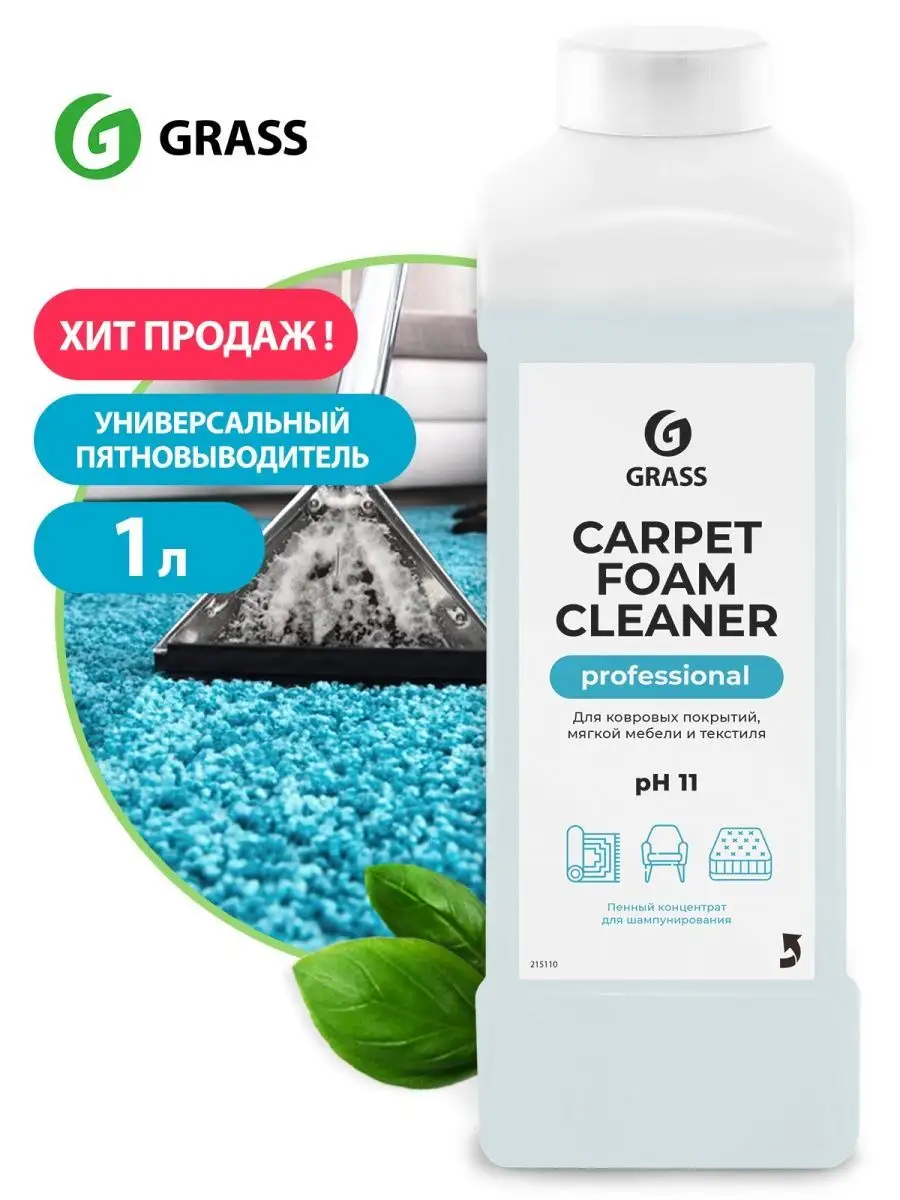Описание: Универсальное чистящее средство Carpet Foam Cleaner grass грасс 1 литр для ковров, мебели, ковролина, паласов. Универсальный пенный моющий состав для чистки ковровых покрытий и мягкой мебели от любых загрязнений. Средство для чистки ковров и мягкой мебели подходит для чистки ткани велюра из искусственной кожи, пластика и стекол. Жидкость для очистки в концентрированном виде применяется как пятновыводитель удаляет пятна от вина сока крови жира и других загрязнений, устраняет неприятный запах. Перед началом химчистки пропылесосить поверхность, удалить пятна растворителем или данным концентратом, не разбавляя с водой. Для общей чистки жидкое средство концентрат следует разбавить 1:6-1:20,50-150мл/л. Средство для чистки мягкой мебели нанести распылителем или ковровым экстрактором. Загрязнения при необходимости потереть щеткой. Остатки раствора вместе с загрязнениями собрать пылесосом или вручную. При нанесении с помощью экстрактора, промыть поверхность водой. Очистить домашний ковер стало проще. Приобретая средства для уборки дома: чистящие и моющие товары GRASS, Вы поддерживаете эко проекты компании по использованию вторично переработанного пластика. Попробуйте всю линейку косметики и бытовой химии от официального магазина Грасс!