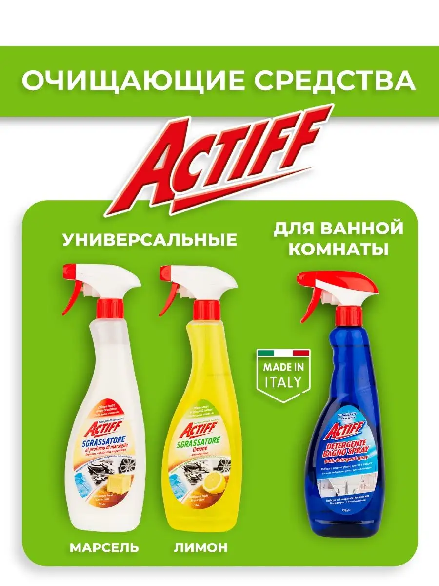 Описание: Представляем вам универсальное чистящее средство с свежим ароматом лимона от итальянского бренда Actiff. Этот продукт — это ключ к многозадачной и приятной уборке вашего дома, который обязательно привнесет радость и чистоту в вашу жизнь. Аромат Лимона: Аромат лимона всегда ассоциируется с свежестью и чистотой. Он не только придает вашему дому удивительную свежесть, но и создает приятное настроение во время уборки. С этим чистящим средством, ваша квартира будет всегда пахнуть свежестью летнего сада. Многозадачность: Actiff создал это чистящее средство, чтобы оно справлялось с самыми разнообразными задачами уборки. Оно эффективно удаляет жир, пятна, пыль и грязь с различных поверхностей, включая полы, столешницы, кафель и стекло. Вы можете использовать его для уборки кухни, ванной комнаты, гостиной и многих других помещений. Производство в Италии: Это чистящее средство произведено в Италии, стране, известной своим мастерством в области качественных домашних продуктов. Итальянская эстетика и надежность воплотились в каждой бутылке Actiff. Экологичность: Actiff берет на себя ответственность перед природой и заботится о вашем доме, предлагая экологически чистый продукт, который безопасен для вас и ваших близких. Превратите уборку в легкое и приятное занятие с универсальным чистящим средством от Actiff. Его свежий аромат лимона сделает каждую уборку более приятной, а его многозадачность поможет вам справиться с любыми задачами. Actiff — это надежный спутник в уходе за вашим домом и создании чистой и свежей атмосферы.