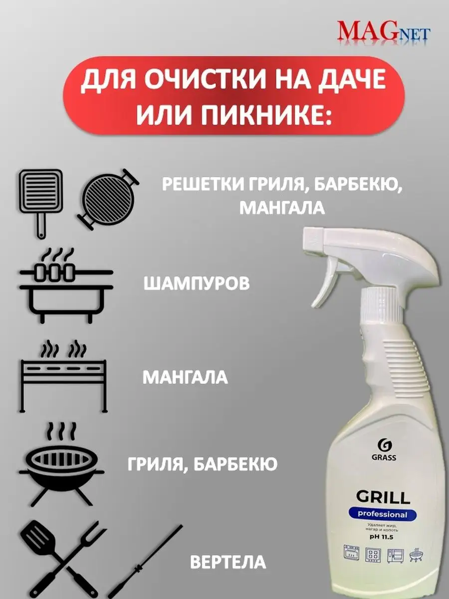Описание: Жироудалитель Grill professional Grass 2х600 мл предназначен для уборки кухни и очистки пароконвектоматов, печей, грилей, кухонных плит, фритюрниц, жарочного оборудования и посуды, духовых шкафов, вытяжных зонтов от стойких пищевых и органических загрязнений: нагара, жира, копоти и пригоревшей пищи. Средство против удаления жира на кухне Гриль Грасс используется на эмалированных, хромированных поверхностях, изделиях из стекла, нержавеющей стали, чугуна, фаянса, фарфора. Набор чистящих средств идеально подойдет для дачи и пикников. Grill Grass легко очистит мангал; шампуры; решетки для гриля, барбекю, мангалов; вертела. Перед использованием чистящего средства проверить на маленьком участке. Нанести на охлажденную либо нагретую до 50 градусов поверхность выдержать 3-5 минут, растереть щеткой, промыть водой. При сильных загрязнениях повторить обработку и увеличить время выдержки. Чистящие средства Grass незаменимая помощь для дома и кухни, для дачи и пикников.