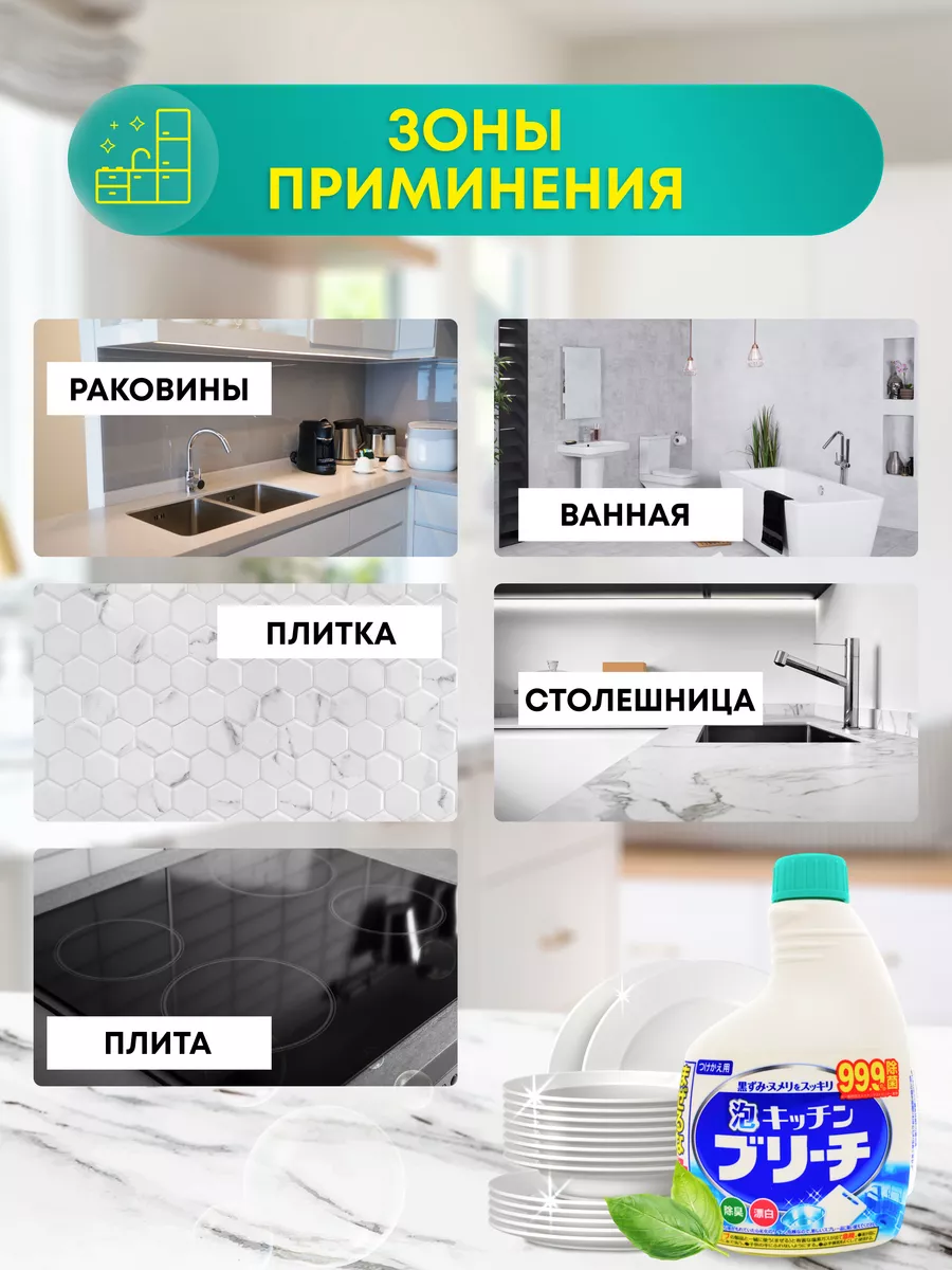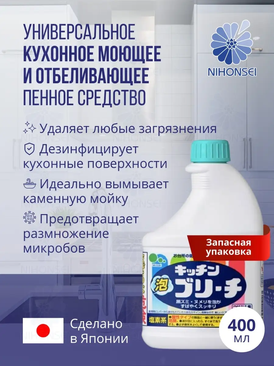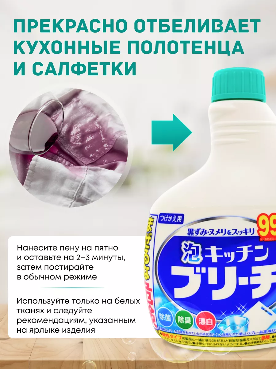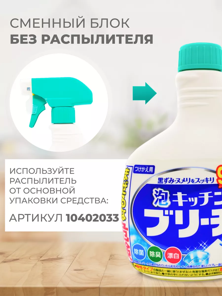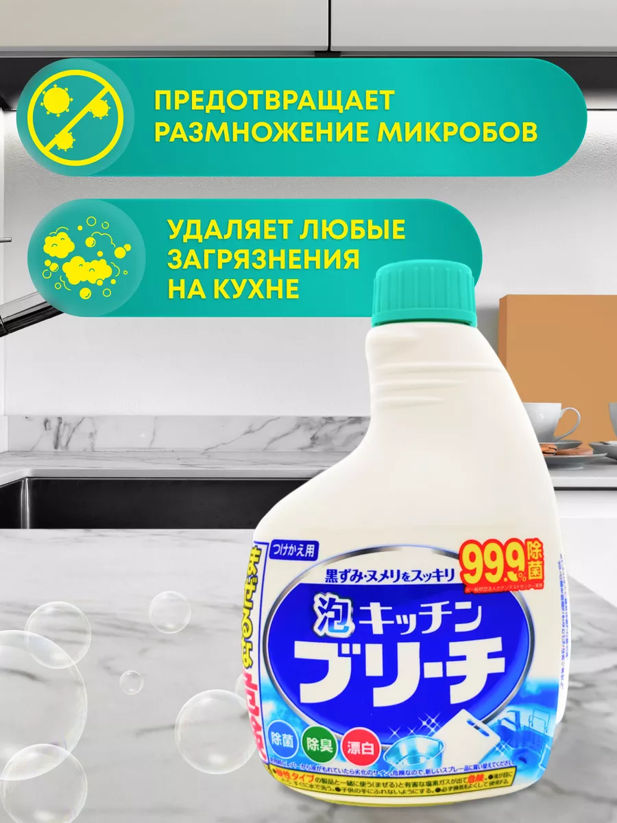 Описание: Универсальное кухонное моющее и отбеливающее пенное средство станет незаменим помощником в поддержании чистоты на кухне. Благодаря распылителю, пенное средство невероятно удобно и экономично. Пена легко удаляет любые загрязнения. Прекрасно отбеливает кухонные полотенца и салфетки. Дезинфицирует кухонные поверхности, разделочные доски. Средство прекрасно очищает, отбеливает и дезинфицирует кружки и ложки. Отбеливатель устранит неприятные запахи и предотвратит размножение микробов. К данному товару можно дополнительно приобрести дополнительно спрей без распылителя. Производства Япония.