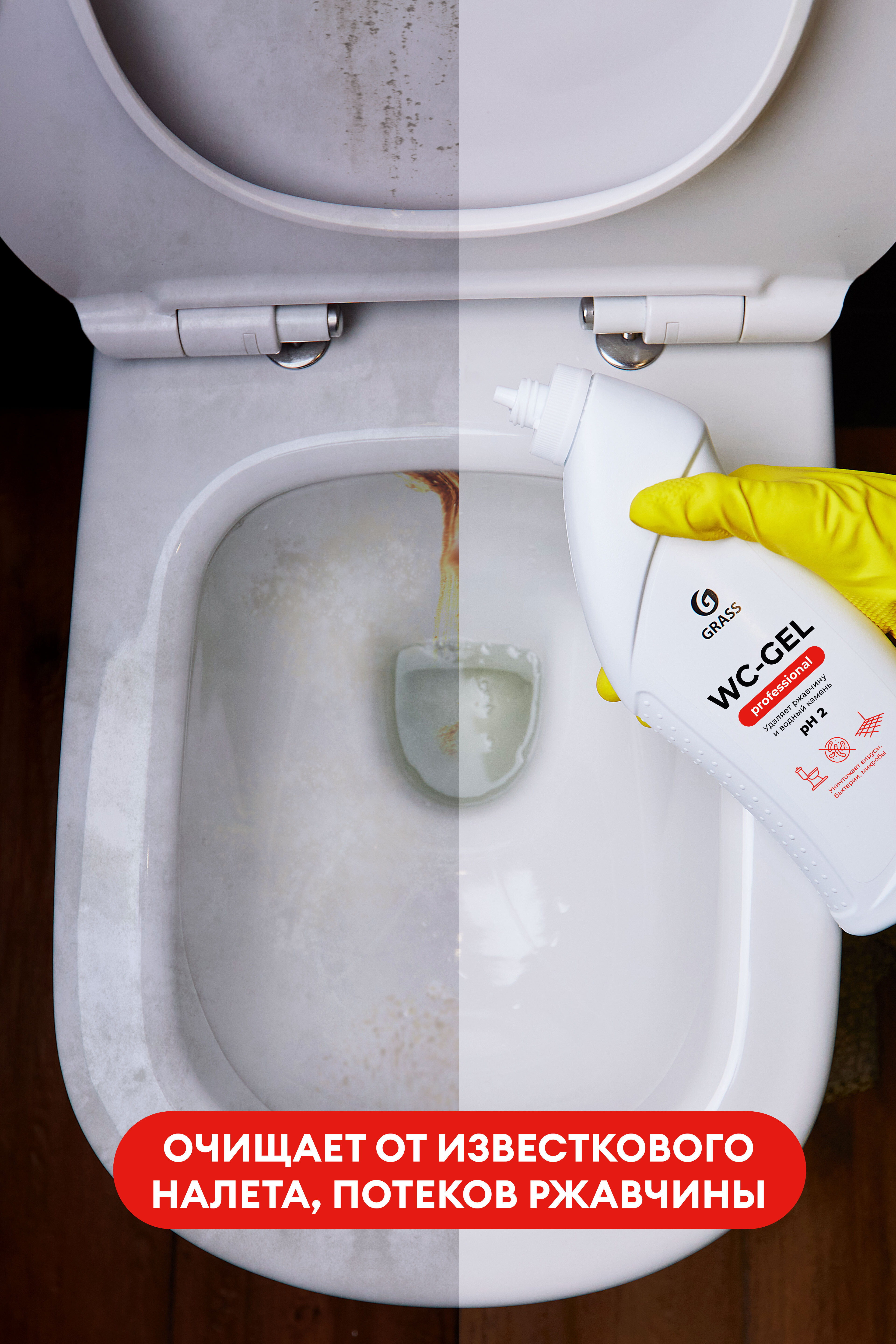 Описание: Кислотное чистящее средство для чистки унитазов, фаянсовых изделий, кафеля от известкового налета, потеков ржавчины, солевых отложений. Способствует устранению неприятного запаха, убивает микробы. Гелеобразная структура чистящего средства обеспечивает его экономичный расход.
