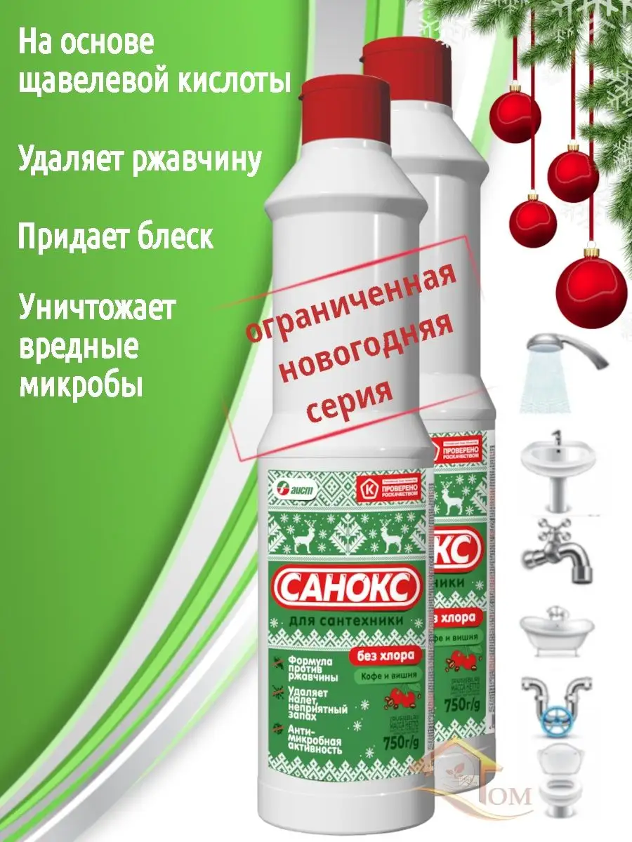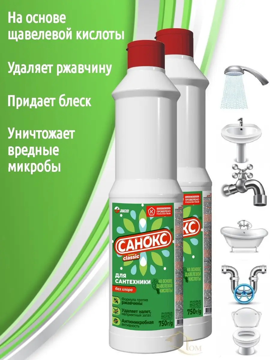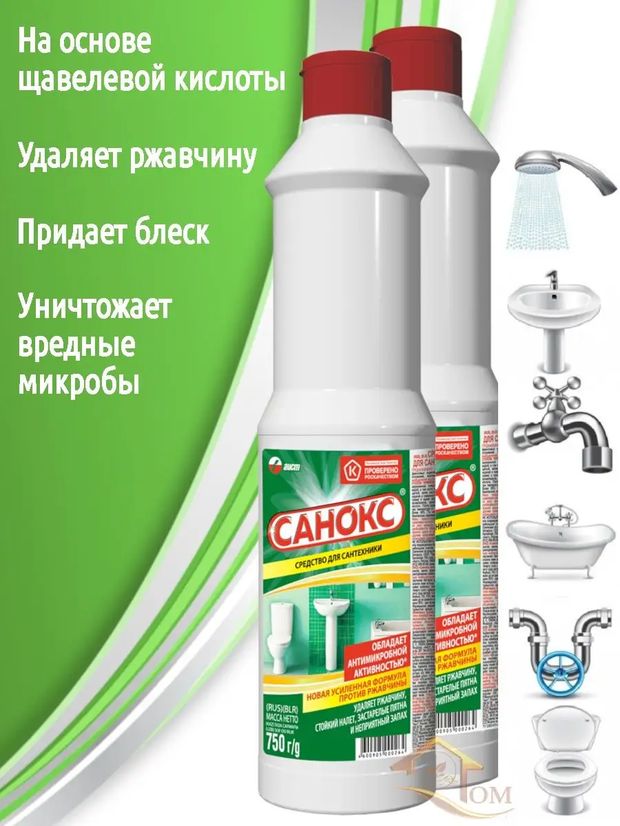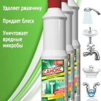 Описание: Санокс эффективное экологическое чистящее средство на основе щавелевой кислоты без вреда для сантехники и окружающей среды. Гель очиститель отлично подойдет для удаления ржавчины и известкового налета, придаст блеск и сияние поверхности, уничтожит вредные микробы и неприятные запахи. А также без следа устранит мыльный осадок, жир и глубоко въевшуюся грязь. Моющее средство абсолютно безвредно и прекрасно поможет отмыть и провести дезинфекцию раковин, унитазов, душевых кабин, кафельных плиток и другого сантехнического оборудования, обеспечивая в конце полное смывание.