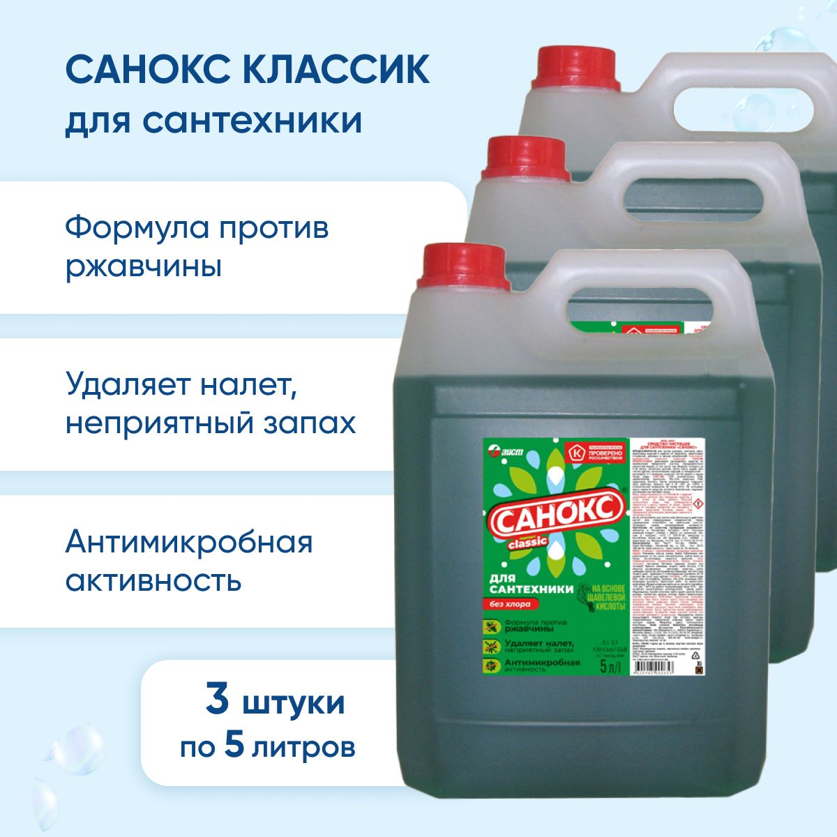 Чистящее средство для сантехники Санокс Классический 5 л 3 шт, чистящее средство для унитаза без хлора антибактериальное