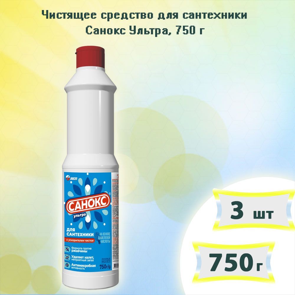 Чистящее средство для сантехники Санокс Ультра, 750г х 3шт