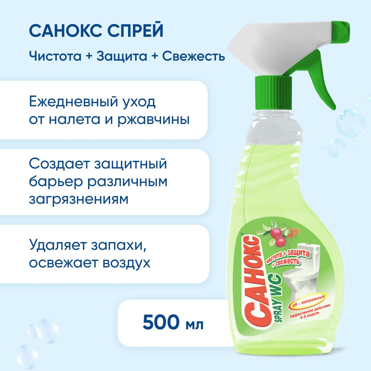 Чистящее средство для туалета Санокс spray WC, 500 мл, для унитаза