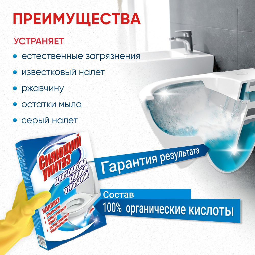 Чистящее средство для туалета Сияющий унитаз НБТ-Сибирь в наборе из 2 упаковок, органическая кислота для удаления известкового налета, ржавчины и мочевого камня дома и на даче