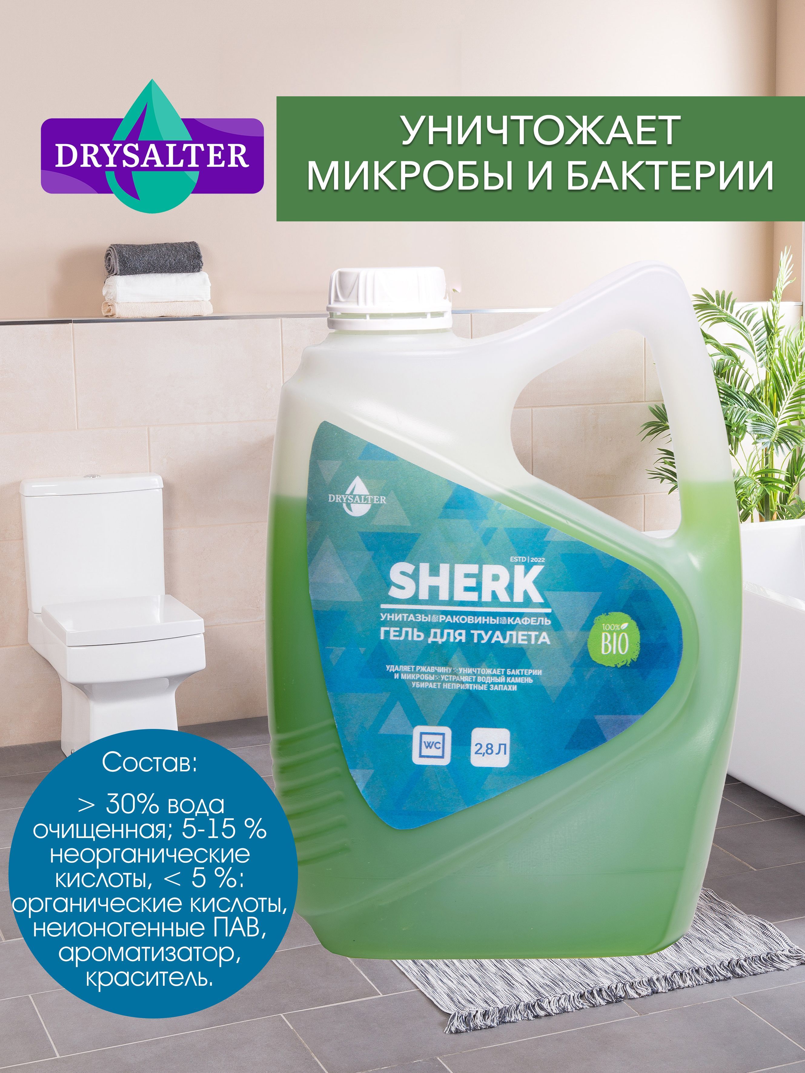 Чистящее средство для туалетных и ванных комнат Sherk, 2,8 л