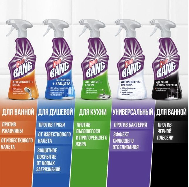 Описание: Мощное средство ''Cillit Bang'' против черной плесени, 750 мл Попробуйте действительно мощное средство ''Cillit Bang'' Удаление черной плесени! Благодаря мощной формуле оно эффективно работает против плесени и грибка. 2 Эффективное решение для сырых поверхностей, подвергающихся образованию плесени и грибка. Идеально подходит для уборки ежедневных или застарелых пятен, в том числе черного плесневелого налета и грибка, для различных материалов и поверхностей, таких как раковины, ванны, душевые кабины, рабочие поверхности на кухне и др. Мощное средство ''Cillit Bang'' против черной плесени, 750 мл - №1 чистящий спрей в России 1 - Эффективно в борьбе с черной плесенью и грибком 2 - Идеально подходит для сырых поверхностей в ванной и на кухне - Легкое использование благодаря удобному распылителю -Подходит для различных материалов и поверхностей