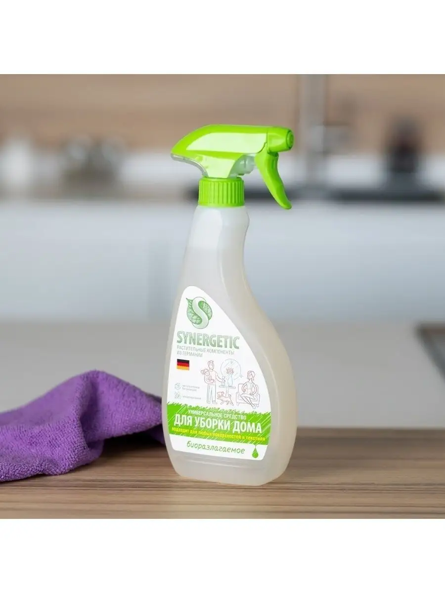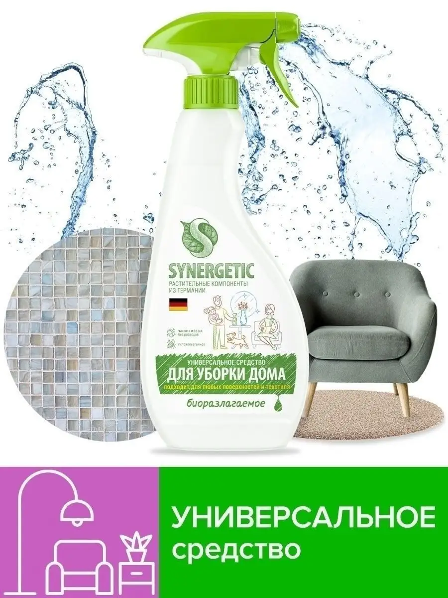 Описание: Универсальный биоразлагаемый спрей для уборки SYNERGETIC — это многофункциональное чистящее средство, которое быстро и легко удаляет любые виды загрязнений: грязь, масложировые пятна, пыль, налет. Эффективно устраняет неприятные запахи и обезжиривает поверхность, защищая ее от повторного загрязнения. Спрей подходит для любых видов поверхностей. Средство является гипоаллергенным и не содержит красителей, искусственных ароматизаторов, хлора и агрессивных ПАВ, а также полностью состоит из биоразлагаемых компонентов, что делает его безопасным для септических установок. *** Произведенный с использованием передовых технологий, этот спрей гарантирует безупречную чистоту в вашем доме. Благодаря своей уникальной формуле, он эффективно удаляет даже самые стойкие загрязнения на всех поверхностях, включая кухонные столы, ванные комнаты, напольные покрытия и многое другое. Наше универсальное чистящее средство обладает приятным ароматом, который оставляет после себя свежий и чистый запах в доме. Благодаря удобному спрею, вы можете легко наносить средство на поверхности, экономя время и усилия. К тому же, его удобный объем в 0,5 литра гарантирует долгую службу без необходимости постоянной покупки новых средств. Чистота - это не только забота о здоровье, но и уют в вашем доме. Используя наше универсальное чистящее средство для дома от бренда Synergetic, вы без труда достигнете идеальной чистоты и создадите атмосферу гармонии и комфорта. Обратите внимание на наш спрей уже сегодня и разнообразьте свою уборку легкостью и эффективностью! У нас есть акции и распродажи, вы можете купить наши товары в подарок со скидкой!