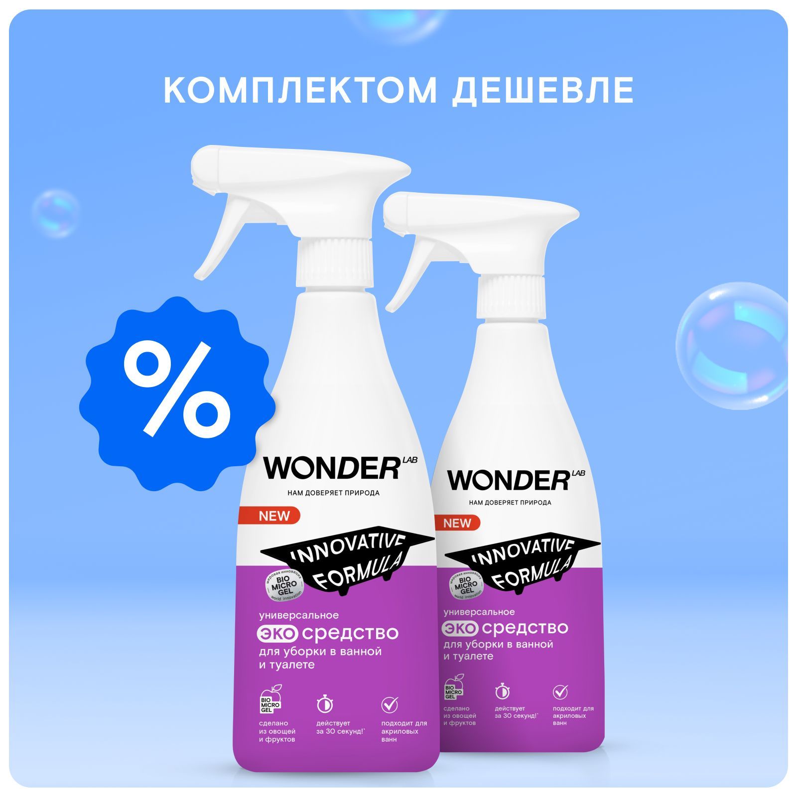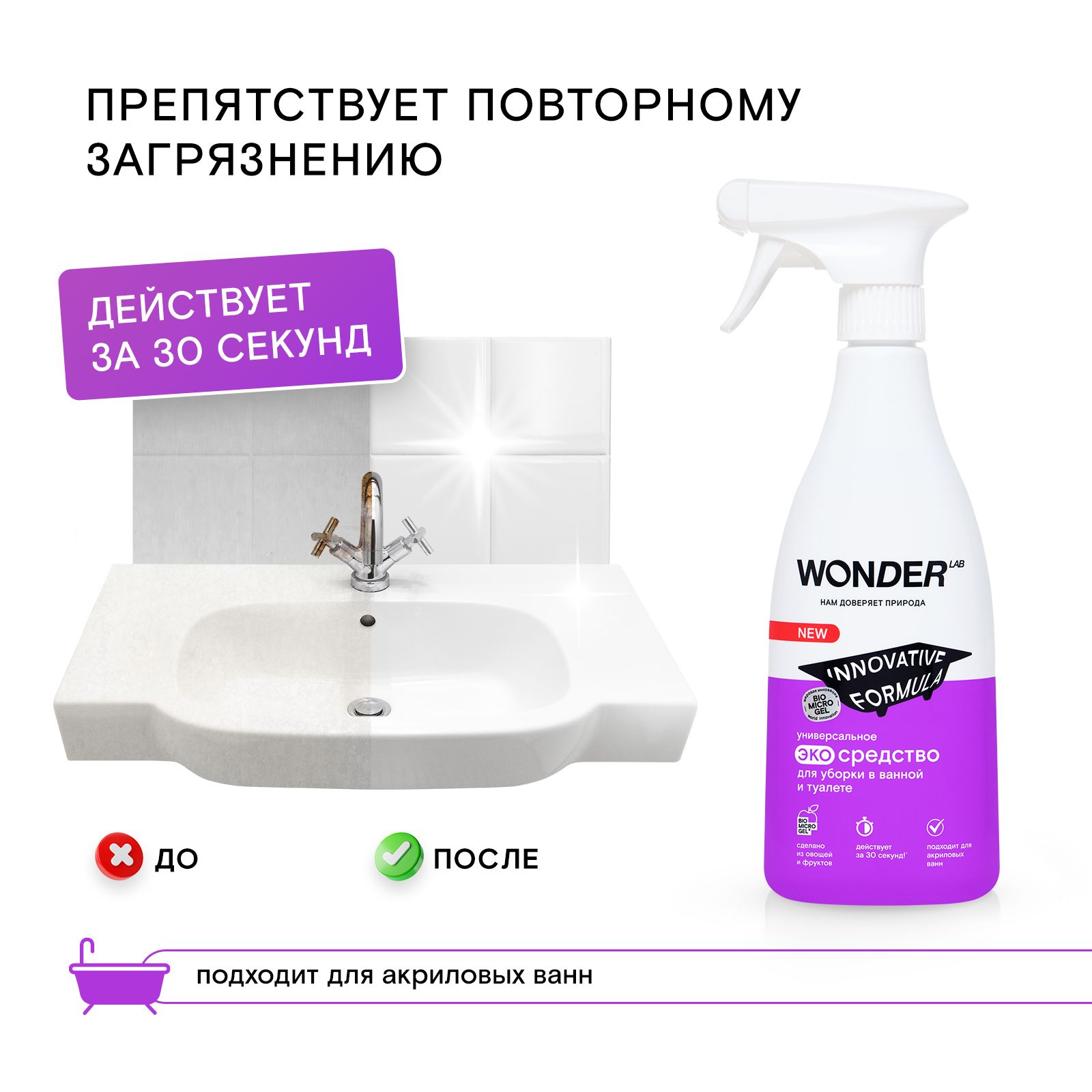 Чистящее средство для уборки в ванной и туалете WONDER LAB, эко спрей для сантехники и акриловых ванн, без хлора и резкого запаха, 550 мл
