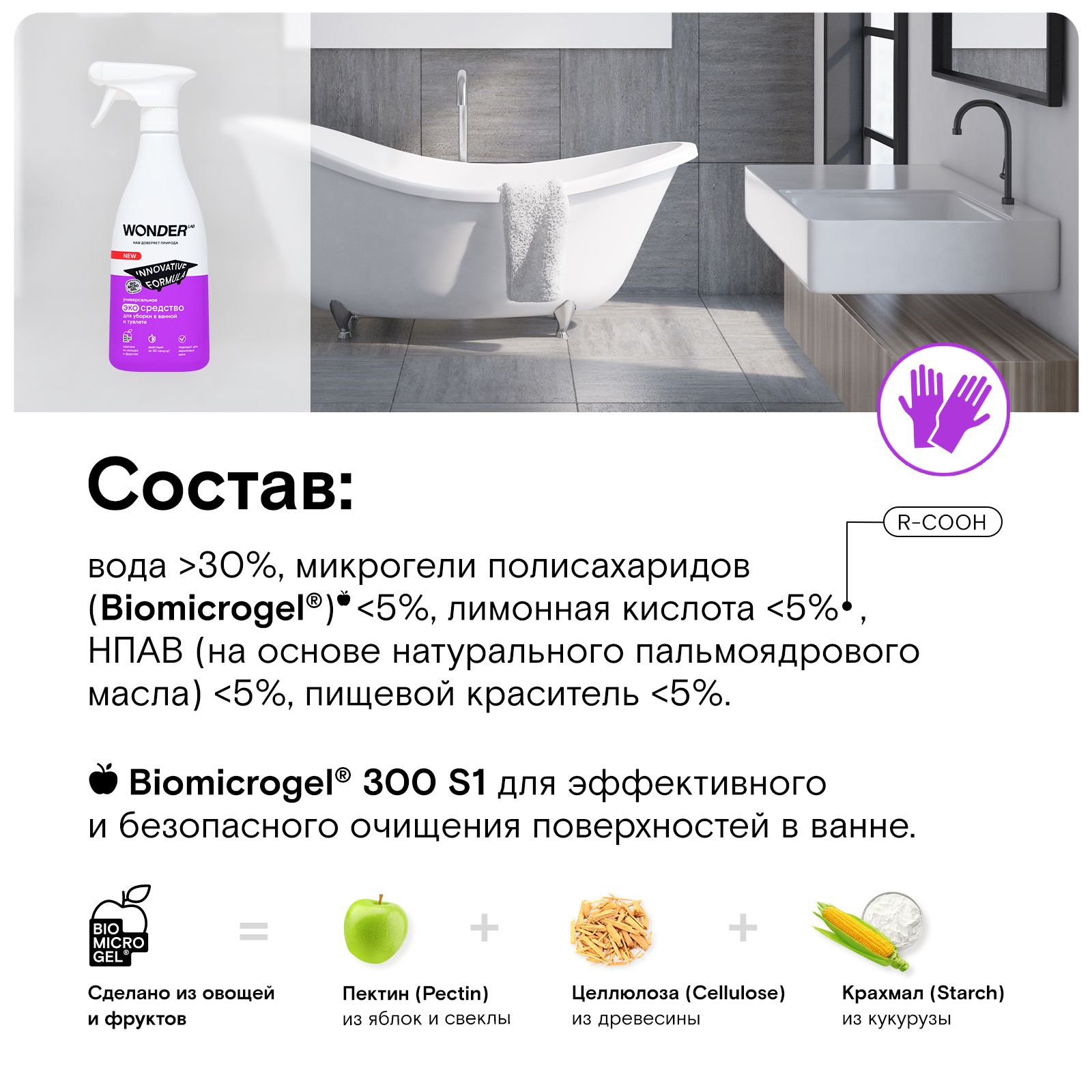 Описание: Спрей для уборки в ванной комнате WONDER LABБережно и эффективно удаляет любые типы загрязнений.