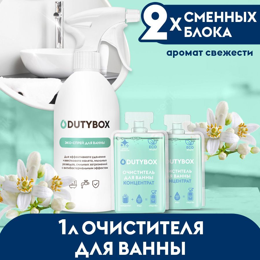 Чистящее средство для уборки ванной туалета DUTYBOX 1 л, моющий спрей очиститель керамики и сантехники, антиналет, многоразовый дозатор