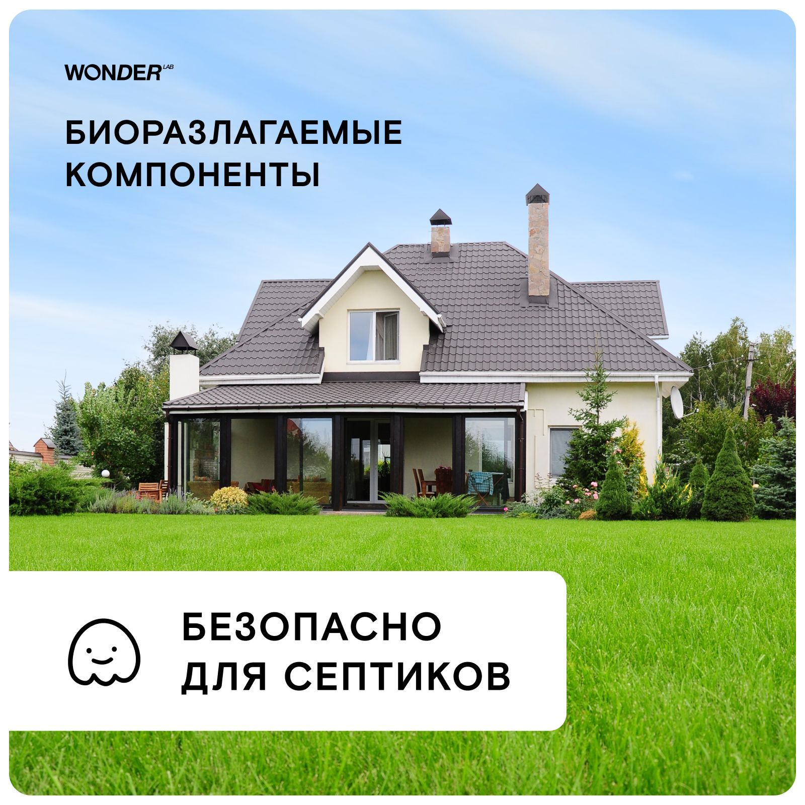 В составе экосредства нет хлора, поэтому гель безопасен для домов с септиками и аллергиков, которые реагируют на резкие запахи бытовой химии.