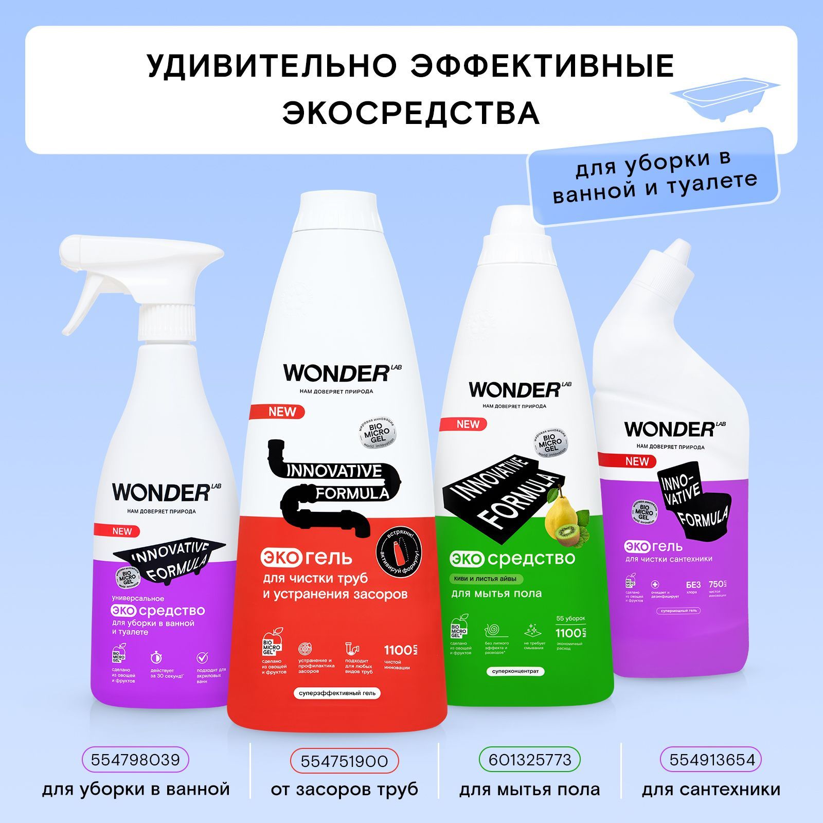 Рекомендуем попробовать другие средства WONDER LAB:Кликните на изображения со средствами или на иконку магазина WONDER LAB, чтобы посмотреть другие наши средства.Спрей для ванныСпрей для ванныУдаляет следы от ржавчины, мыльный и известковый налет. Подходит для акриловых ванн и душевых кабин.От засоров трубОт засора трубРастворяет волосы 100%.