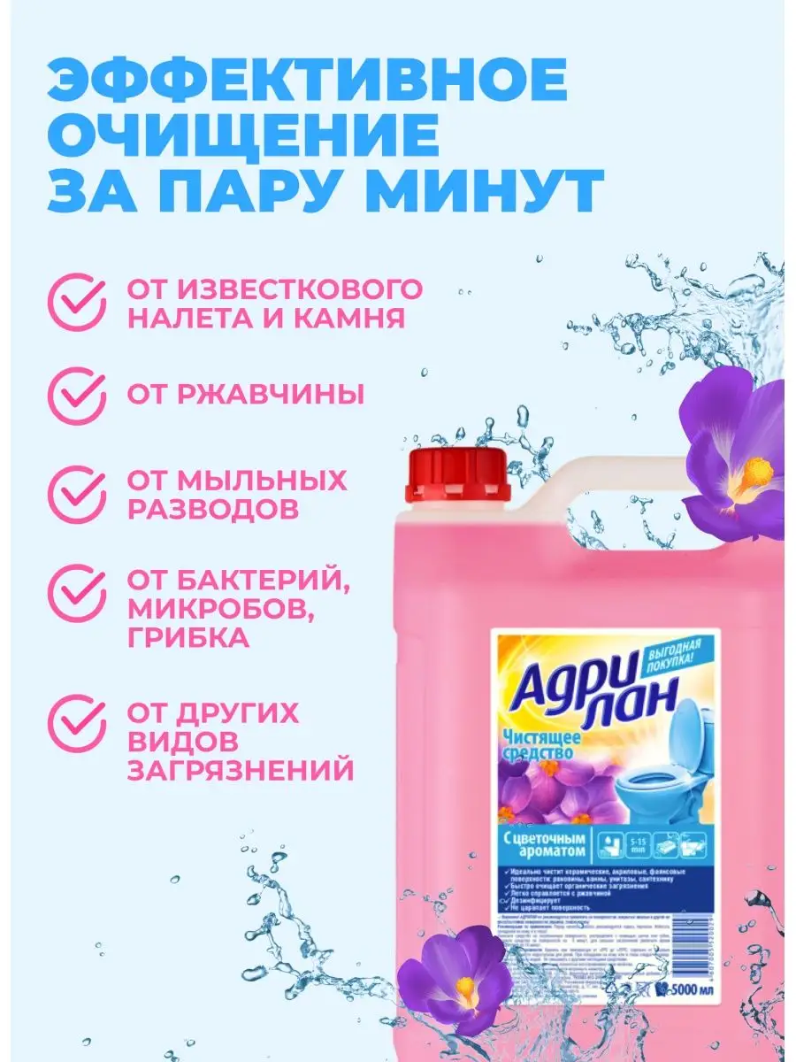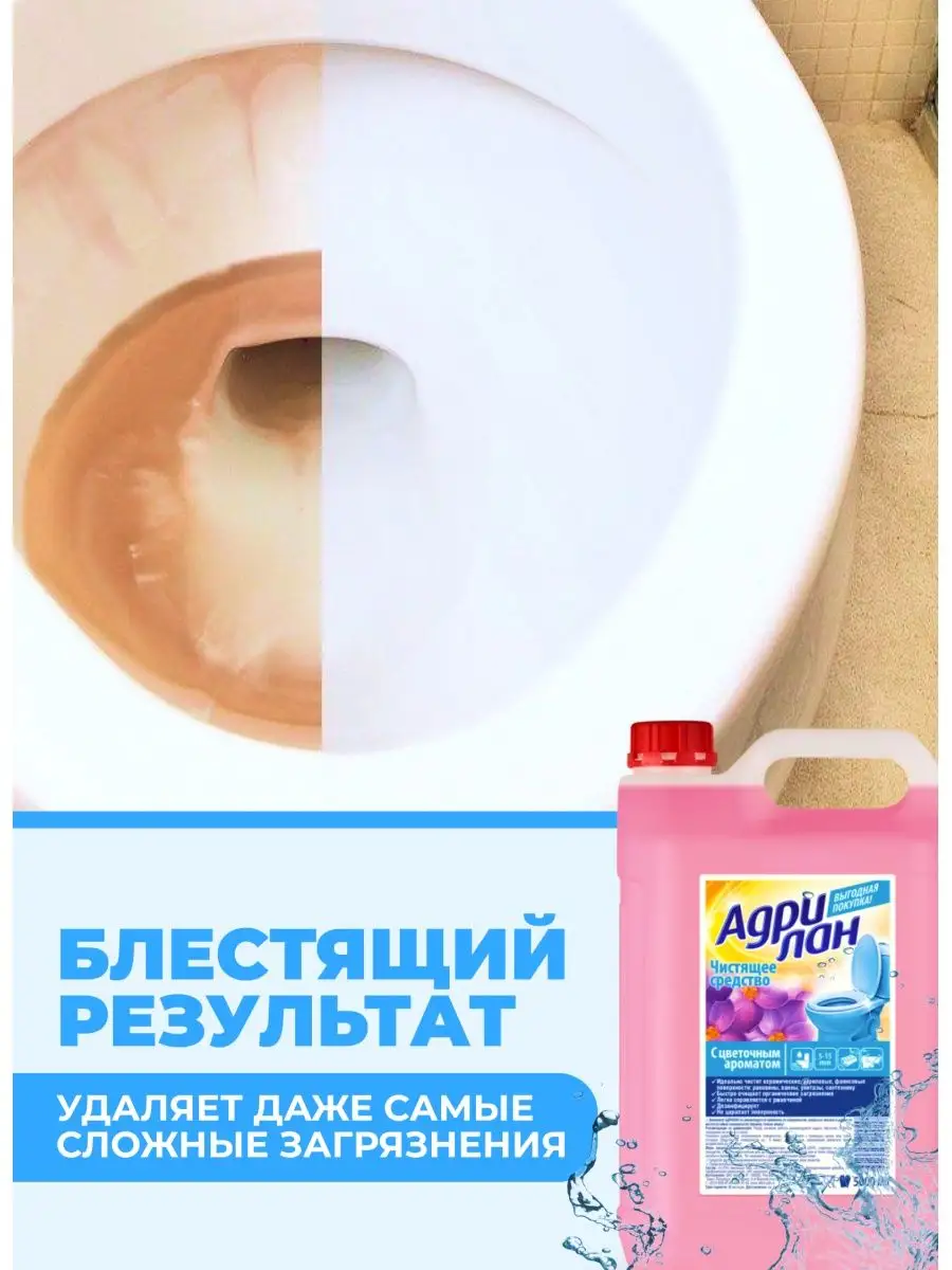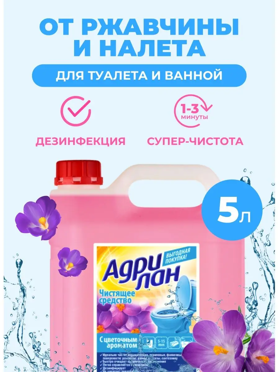 Описание: Адриан гель это высокоэффективное чистящее средство для унитаза. Средство для унитаза борется с размножением бактерий, помогает избавиться от налета и от ржавчины. Антикальций средство для чистки унитаза избавляет поверхности от известкового налета за 5 минут. Также гель высокоэффективен в качестве средства от ржавчины для унитазов. Гель для унитаза избавляет поверхности от всех видов загрязнений: от мыльных разводов, до сильных загрязнений. Чистящее средство для мытья унитаза, а также ванной и сантехники бренда Adrilan надолго сохраняет чистоту и свежесть. Универсальное средство для чистки сантехники Адрилан может использоваться для раковины, всех видов кранов, ванной кабины, душевой кабины, ванной. Меры предосторожности: Средство для туалета Адрилан содержит ряд химических компонентов, которые могут вызвать раздражение слизистой и кожного покрова. Из-за этого перед применением средства для мытья унитаза рекомендуется надеть перчатки, избегать попадания в глаза и на кожу. Условия хранения: Средство не рекомендуется смешивать с иными чистящими составами. Гель для унитаза Адрилан после размораживания полностью восстанавливает свои свойства.