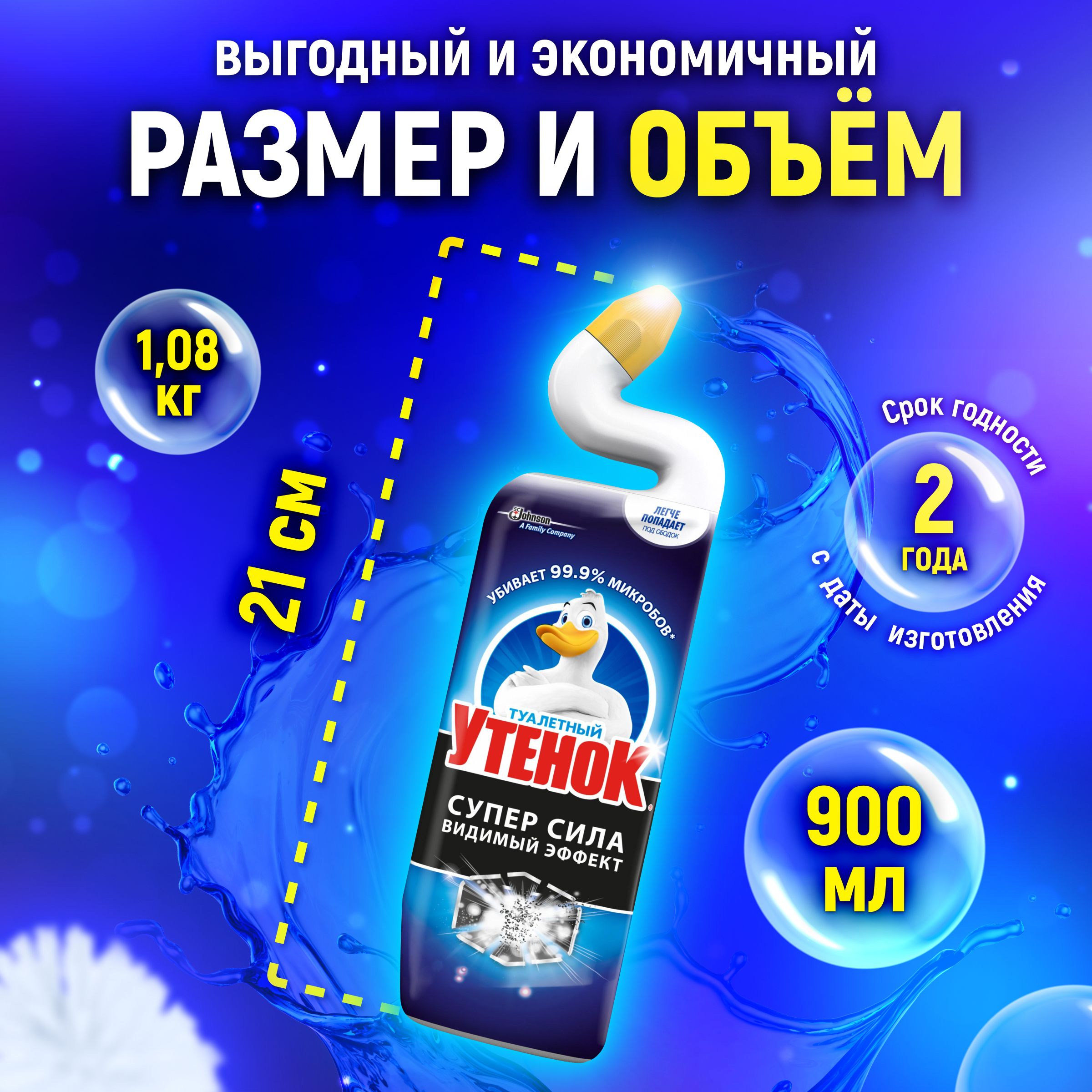 Чистящее средство для унитаза Туалетный утенок, жидкий гель для туалета, Видимый эффект, 900 мл