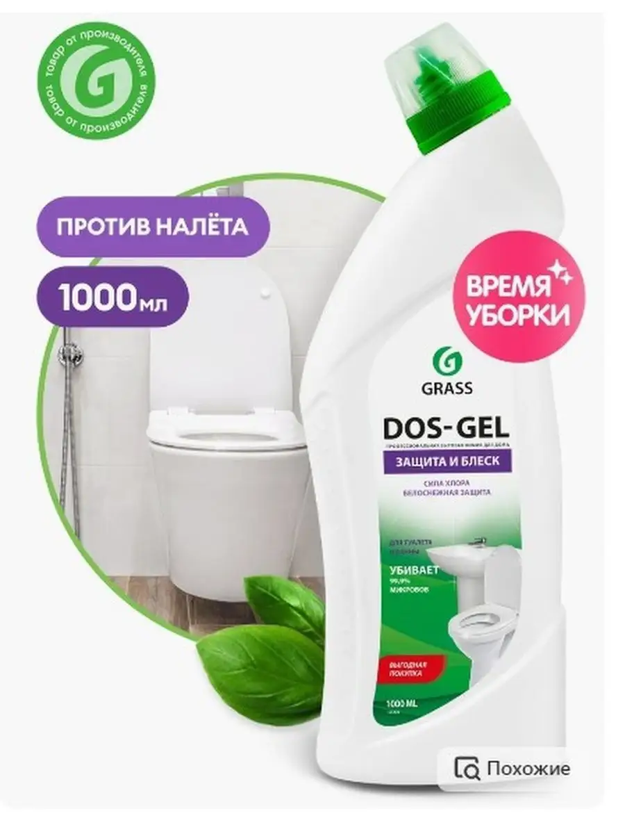 Описание: Гель для туалета Dos-gel 1 л от компании Grass - профессиональная бытовая химия для чистки унитазов, кафеля, сантехники обладает силой хлора, что дает отбеливающий эффект и белоснежную чистоту, не повреждая поверхность. Гель идеально подходит для чистки фаянсовых изделий на кухне и ванной комнаты, туалетов, акриловых ванн, раковин, кафеля, стоков, сливов, пола и рабочих поверхностей. Обладает дезинфицирующими свойствами, удаляет плесень и грибок. Пары защищают от микробов. Подходит для профилактики засоров и устранения неприятных запахов из сточных труб. Густая формула, заключенная в удобную бутылку, позволяет средству дольше оставаться на стенках, продолжая работать и обеспечивает его экономичный расход. Приобретая чистящие и моющие товары Грасс, Вы поддерживаете эко проекты компании по использованию вторично переработанного пластика.