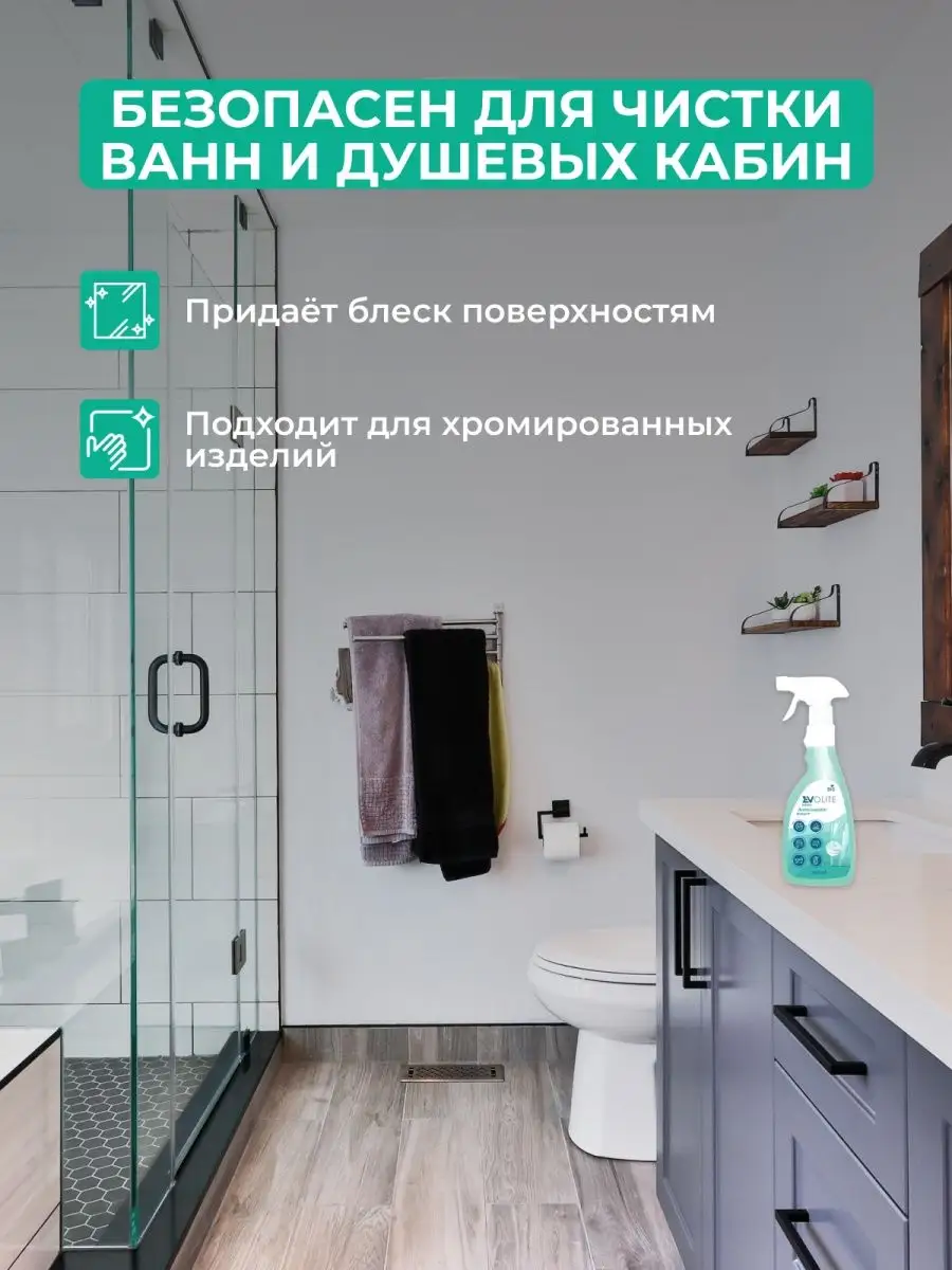 Описание: Чистящее средство от известкового налета с эффектом антикальций спрей - это универсальный товар для уборки, который поможет сохранить чистоту и гигиену в вашей акриловой ванне, душевой кабине, унитазе, раковине и сантехнических устройствах. Это моющее средство очищает поверхности от известкового налета, ржавчины, ржавых подтеков, водного и мочевого камня и солевых отложений, которые могут возникнуть в ванной комнате, подходит для разных поверхностей: керамическая плитка, эмалированная, акриловая ванна. А также таких поверхностей как: пластик, металл, нержавеющая сталь, хромированные поверхности. Средство от известкового налета представлено в виде спрея, который легко наносится на поверхность. Благодаря своей уникальной формуле, средство эффективно удаляет известковый налет, не повреждая поверхность и не оставляя разводов. Оно содержит лимонную кислоту и органические растворители, которая эффективно удаляет известковый налет и другие отложения. Благодаря гидрофобному эффекту, это средство защищает поверхность от возникновения нового налета и отложений. Это профессиональное чистящее средство подходит для использования в домашних условиях. Оно биоразлагаемое, что делает его безопасным для природы и здоровья человека. Приятный запах чистоты оставляет после себя ненавязчивый аромат луговых трав и свежий аромат, который создает чувство комфорта и уюта. Одно из главных преимуществ данного средства - его безопасность для септика. Вы можете использовать его без опасений для окружающей среды и не беспокоиться о последствиях для системы очистки сточных вод. Оно также подходит для удаления налета с керамической плитки, керамогранита и других материалов. Средство от известкового налета - это незаменимый товар для тех, кто ценит чистоту и гигиену в своем доме или на рабочем месте. Оно поможет сохранить вашу сантехнику в идеальном состоянии на долгое время.