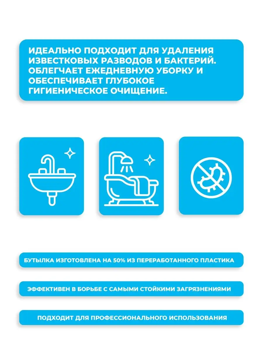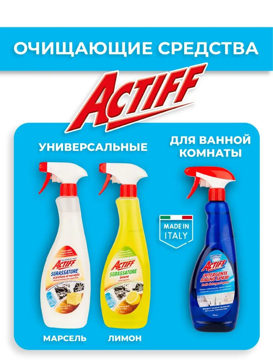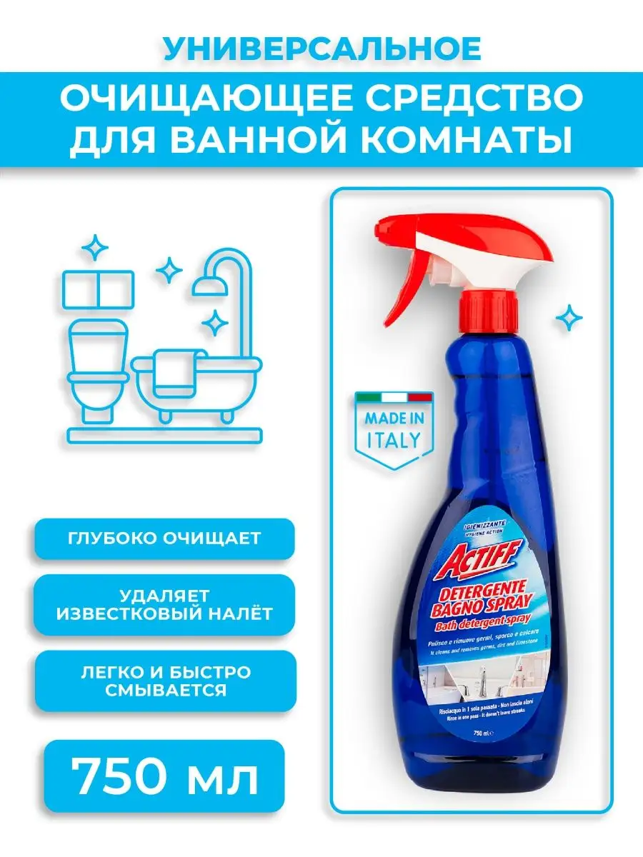 Описание: Универсальное чистящее средство для ванной комнаты Actiff 750 мл — это незаменимый помощник в борьбе с загрязнениями и накипью в Вашей ванной комнате. Благодаря своей уникальной формуле, оно эффективно удаляет известковый налет, пятна и запахи, делая Вашу ванную комнату свежей и безупречно чистой. Средство Actiff разработано специально для стиральных машин, ванн, унитазов и других поверхностей из нержавеющей стали, пластика и мебели. Оно обладает универсальным действием, позволяя легко и быстро очистить любую поверхность от накипи, пятен и грязи. Благодаря своей жидкой консистенции, средство Actiff легко наносится и равномерно распределяется по поверхности. Вы просто наносите спрей на загрязненную поверхность, оставляете на несколько минут, а затем смываете водой или протираете с помощью мягкой губки или тряпки. Результат Вас приятно удивит - Ваша ванная комната будет сиять чистотой и свежестью. Средство эффективно удаляет даже самые стойкие пятна и налет, освежает воздух и защищает поверхности от повторного загрязнения. Оно удаляет микробы и бактерии. Бутылка имеет удобный и точный распылитель, который помогает экономить средство. Также флакон выполнен на 50% из переработанного пластика, это позволяет защищать нашу экологию. Закажите универсальное чистящее средство для ванной комнаты Actiff и позвольте Вашей ванной комнате засиять чистотой и свежестью!