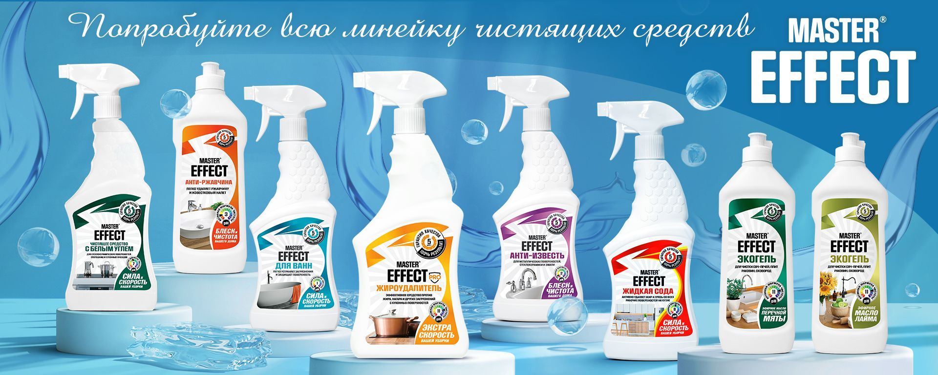 Описание: В линейке моющих средств для уборки от бренда "MASTEREFFECT" представлены эффективные средства для чистки различный загрязнений с любых поверхностей: