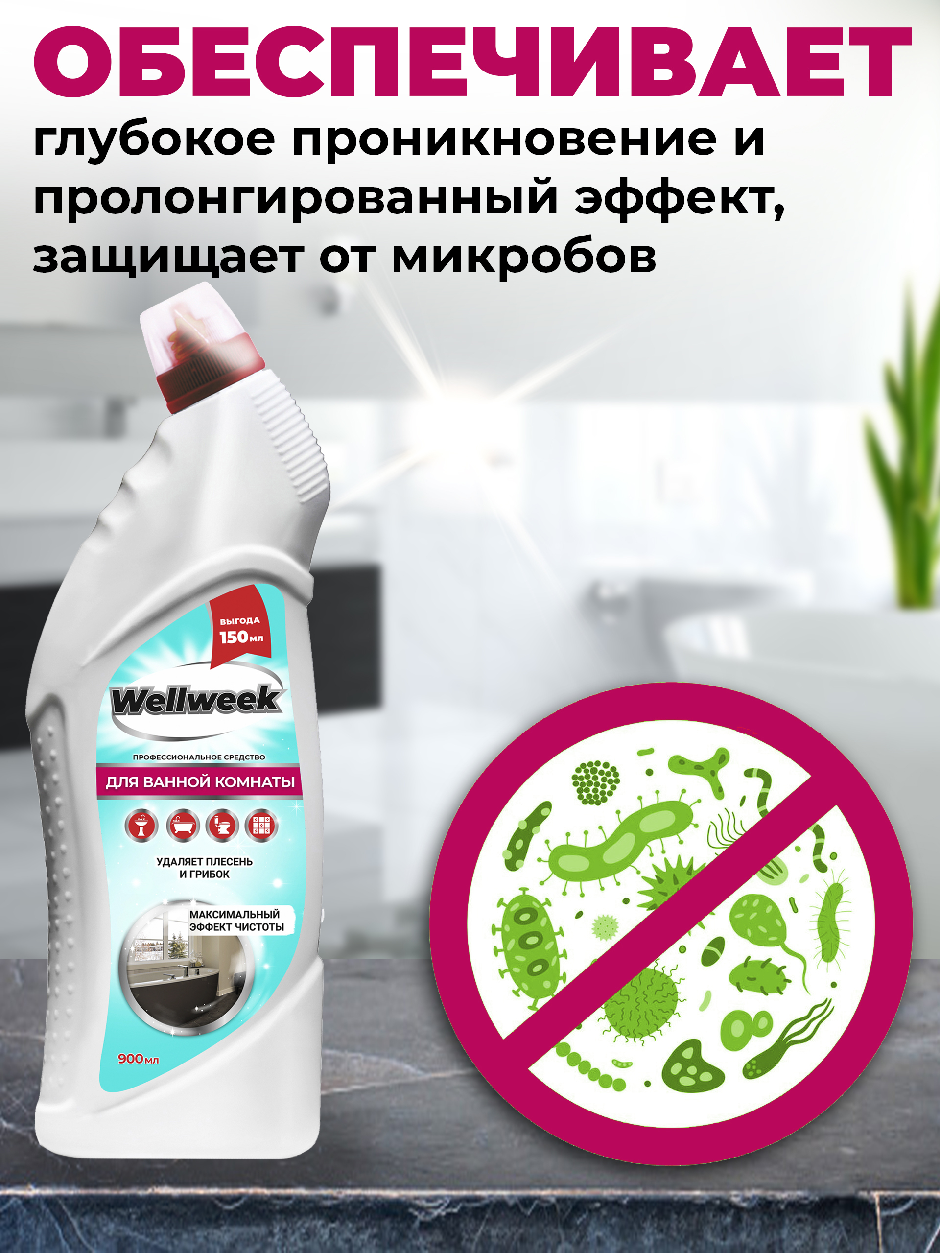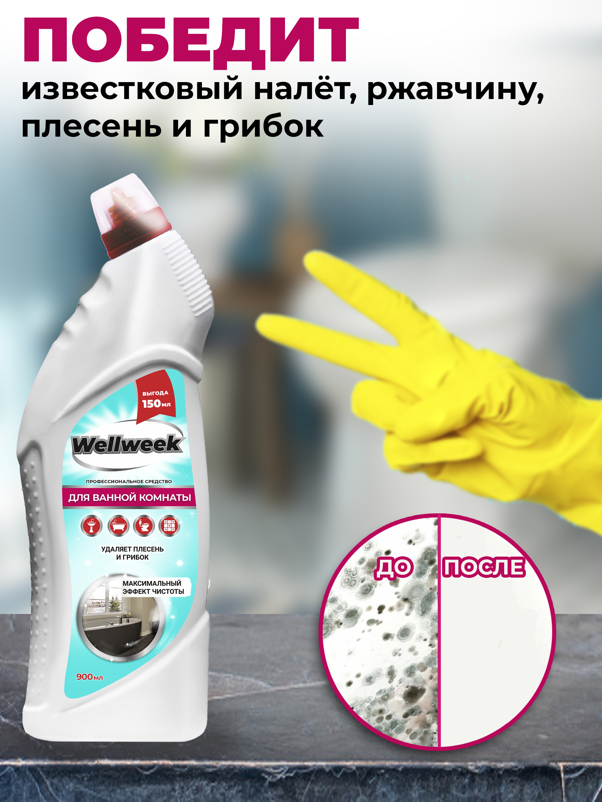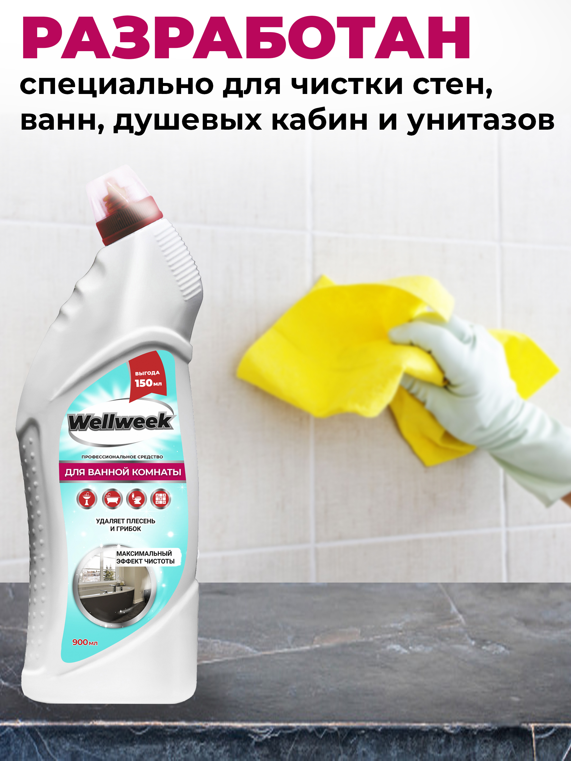 Описание: Универсальное чистящее средство для ванны от Wellweek незаменимый помощник маме, бабушке, жене, дочери по дому.