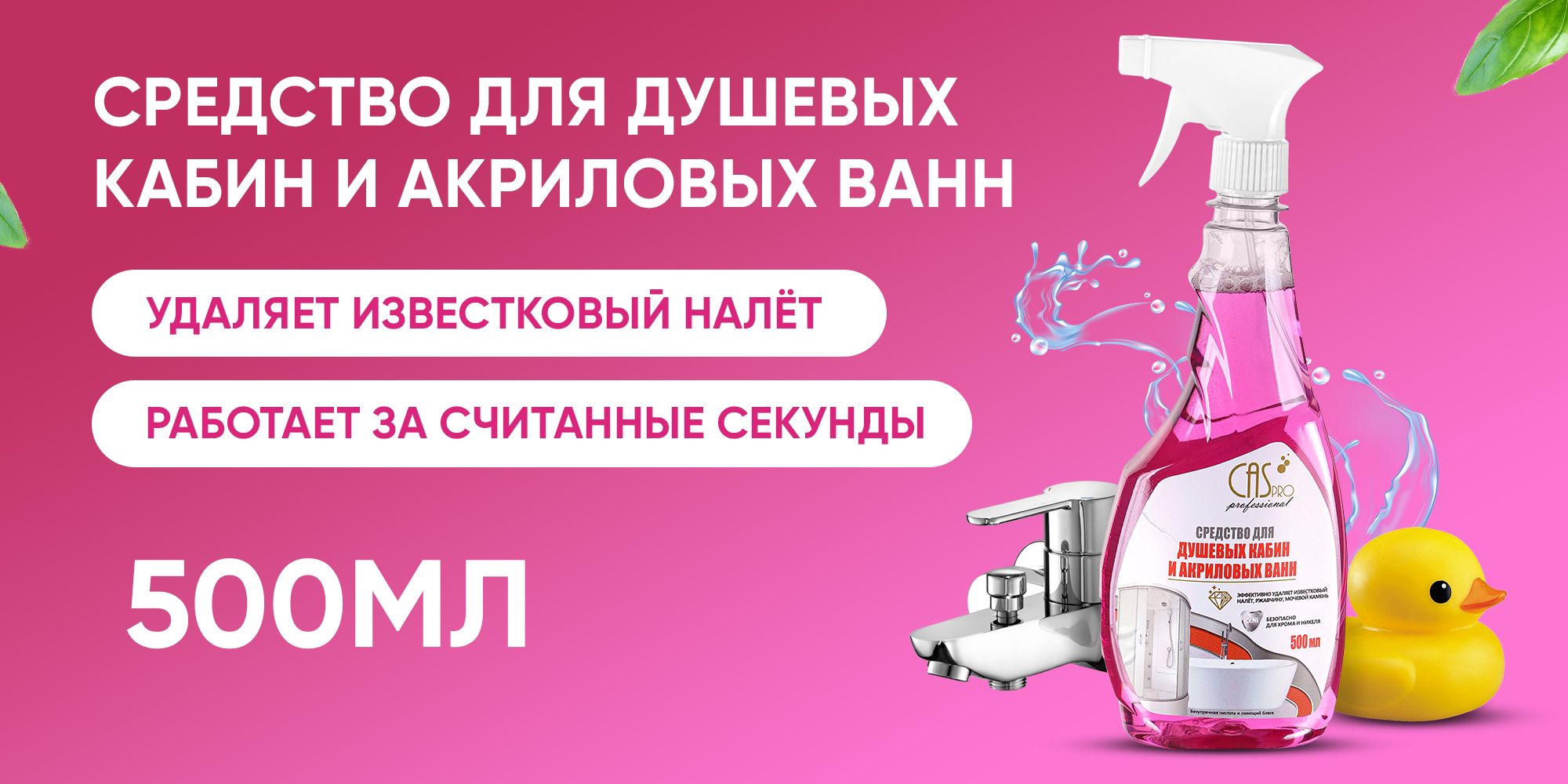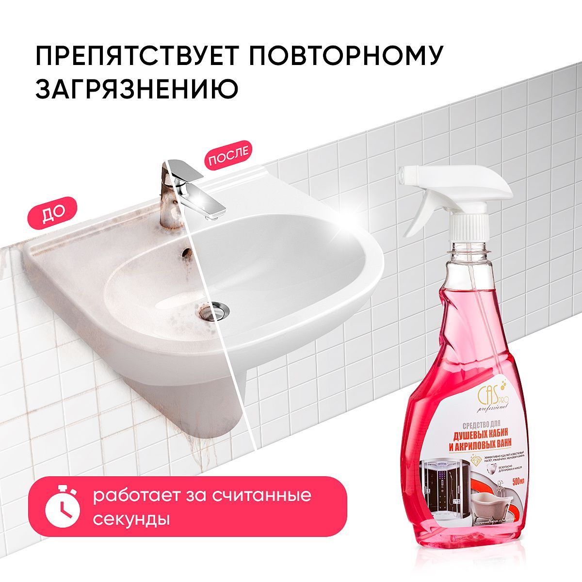 Чистящее средство для ванной, душевых кабин, сантехники от известкового налета и ржавчины, без хлора, CasPro с распылителем 500 мл