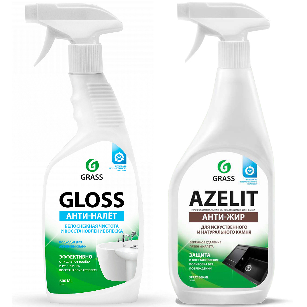 Чистящее средство для ванной Gloss 600мл + Средство для каменных раковин Азелит Azelit 600мл