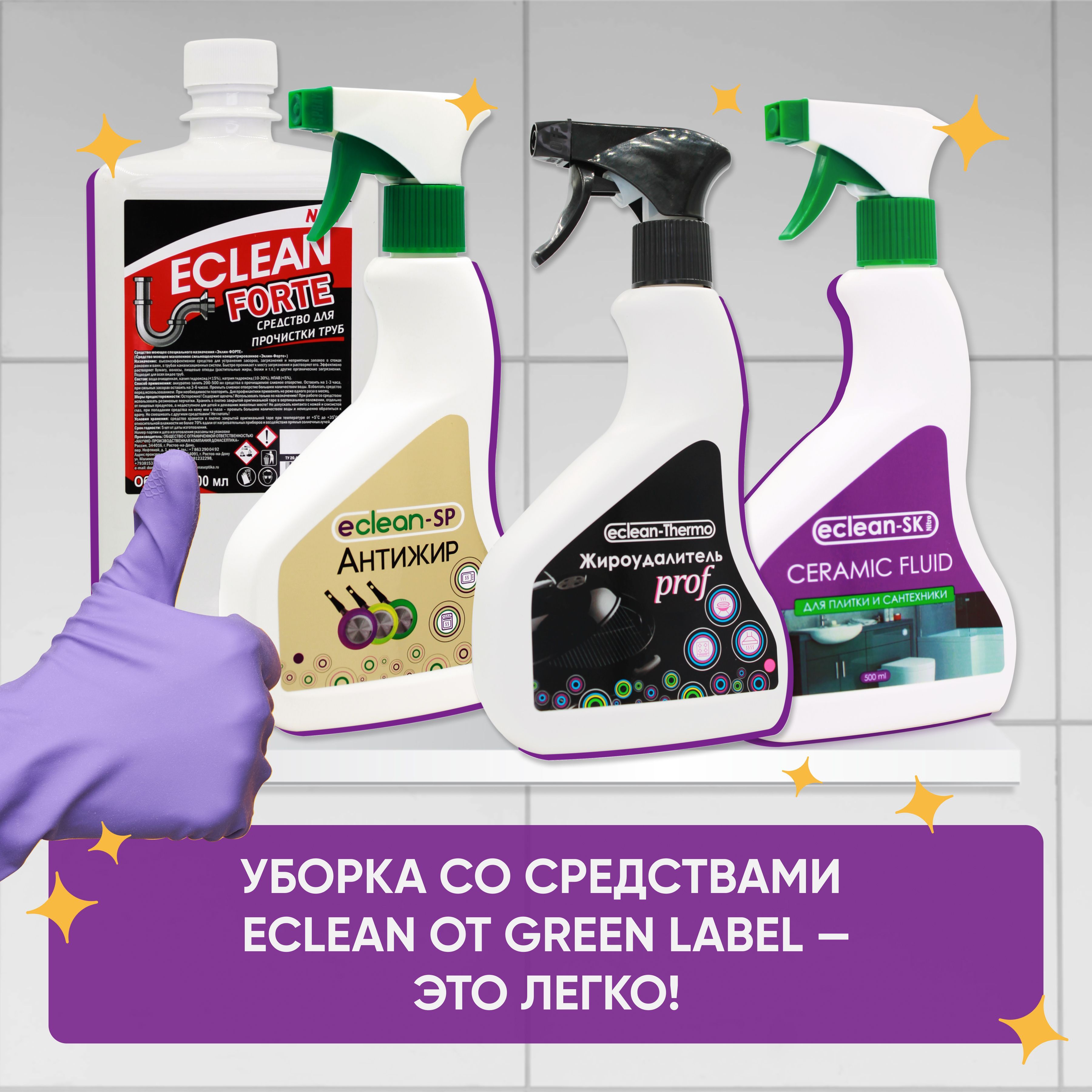 Бытовая химия для уборки домаИнновационная безопасная продукция "Eclean" эффективно справляется с загрязнениями