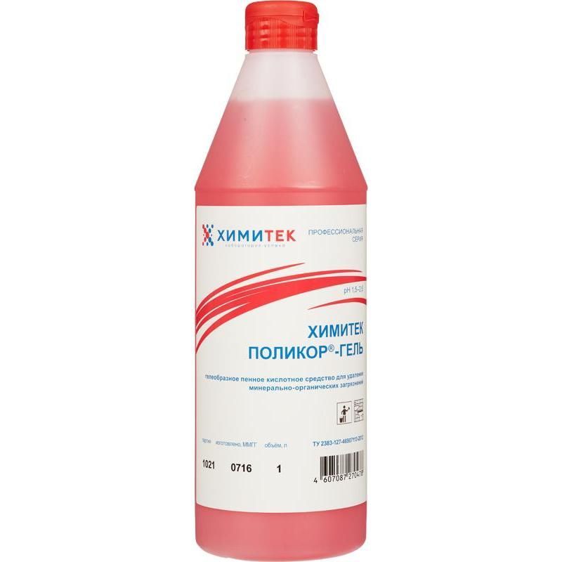 Чистящее средство для ванной Химитек кислотное, для комплексной уборки, дезинфицирующее, Поликор-гель,1 л