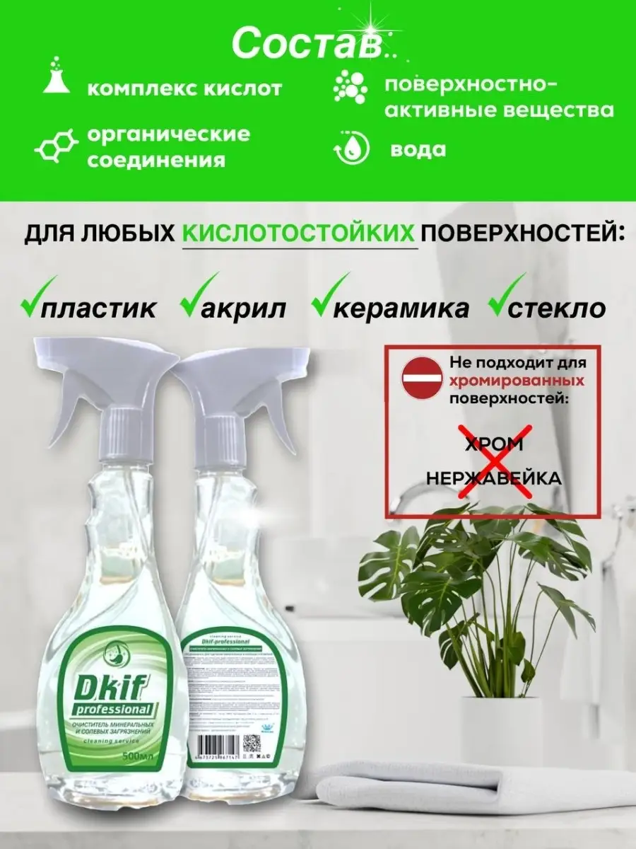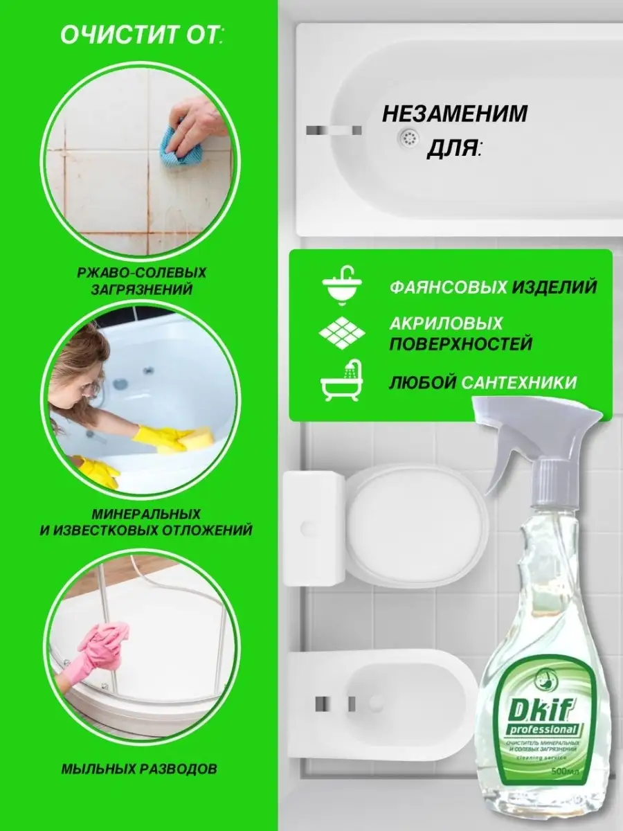 Описание: Универсальное чистящее средство для ванной и унитазов устраняет загрязнения и дезинфицирует поверхность. Моющее средство для акриловых ванн подходит для удаления водного камня и белого налета с с сантехники. Используйте моющее средство для мытья кафельных покрытий и пластиковых панелей, а также . Антикальций быстро справляется с минеральными и известковыми налетами, различными жировыми, ржаво-солевыми, мыльными разводами, ржавчиной и другими видами загрязнений.Отбеливающее средство для унитаза в своем составе содержит комплекс кислот, который пагубно влияет на чувствительные к ним поверхности. Бытовая химия для дома легко и эффективно удаляет застарелые минеральные отложения и отложение мочевого камня. Средство для ванн чистящее подходит для мытья раковин и душевых кабин. Средство от налета и ржавчины во время уборки дезинфицирует, эффективно отбеливает, придает блеск и устраняет неприятный запах. Моющее средство защищает от бактерий и появления ржавчины, а также мыльного и водного камня. Средство от налета в ванной сохраняет эффект антиналет после использования на несколько дней. Рекомендуем использовать как средство от известкового налета для душевых кабин, а также как средство для плиточных швов. Легко справляется с застарелыми пятнами, на такие пятна наносите средство на 15-20 минут, затем потрите губкой или ершиком и смойте водой. Моющие для туалета легко справляется с загрязнениями, во время уборки вам не придется прикладывать больших усилий, работает сразу после распыления самостоятельно. При необходимости повторите процедуру. Если моете хромированные изделия, то разбрызгайте средство и тут же смойте водой, не оставляйте более чем на 10 секунд. ВНИМАНИЕ: с осторожностью применять на хромированных поверхностях.