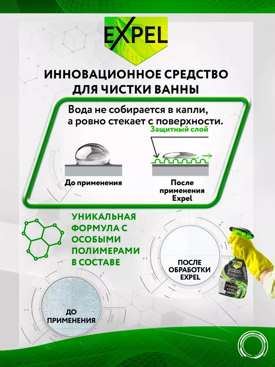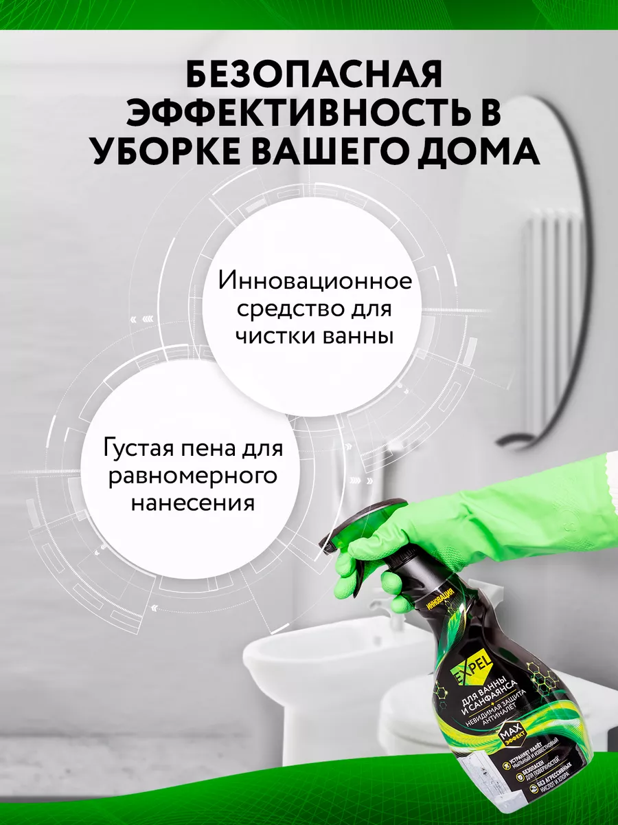 Описание: В современном мире требования к чистоте и гигиене повышаются каждый день. Expel представляет инновационное средство, которое создано для поддержания идеального порядка в ванной. Основной акцент делается на бережном уходе. Известковый налет – частая проблема во многих домах, но благодаря нашему средству его легко устранить, при этом абсолютно безопасно для эмали и металлических поверхностей. Секрет эффективности заключен в уникальном составе, который усилен полимерами. Это обеспечивает долгосрочный эффект чистоты и свежести. Преимуществом является возможность ежедневного использования. Маркировка "eco" подтверждает экологичность и безопасность использования, что важно для заботы о здоровье вашей семьи. Спрей можно использовать для ванны, душевой кабины, кранов или плитки - Expel гарантирует отличный результат. Устраняя загрязнения, средство сохраняет блеск поверхностей, а также оставляет приятный аромат свежести. Выбирая Expel, вы делаете ставку на качество, безопасность и удобство. Наш продукт станет незаменимым ассистентом в делах по дому, обеспечивая чистоту и порядок в каждом уголке вашего жилища. Забудьте о сложностях уборки и доверьте заботу проверенному временем решению.