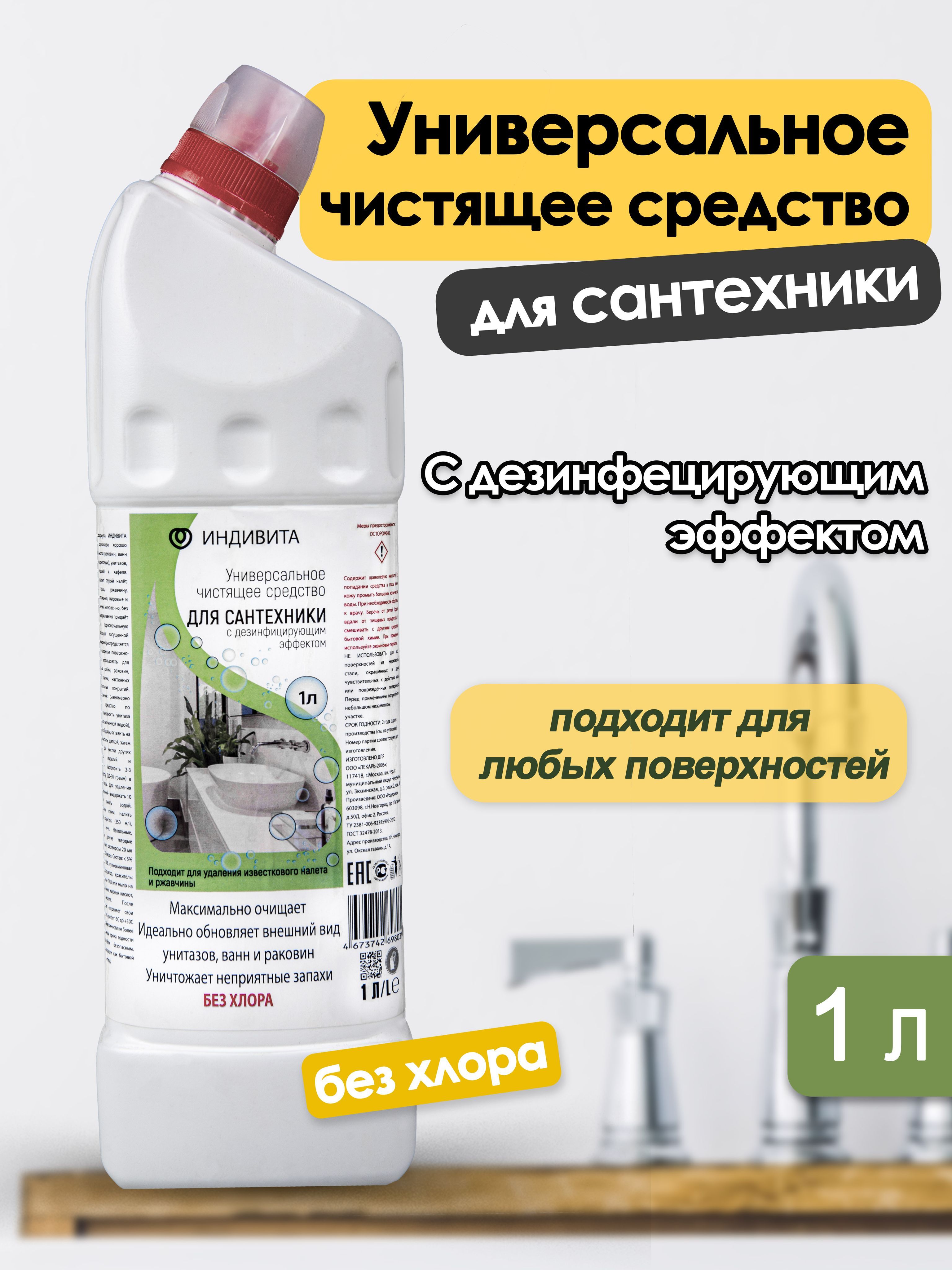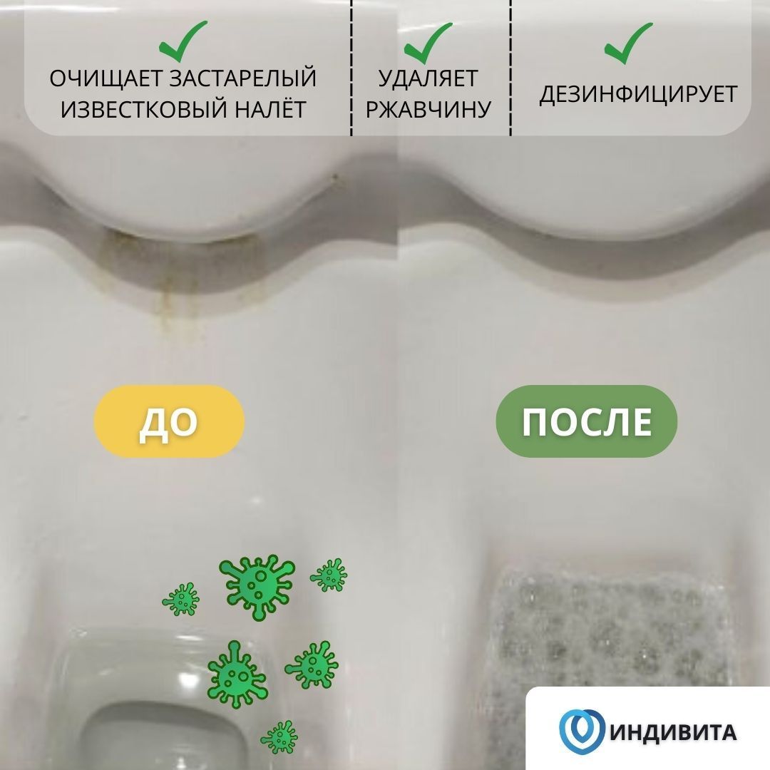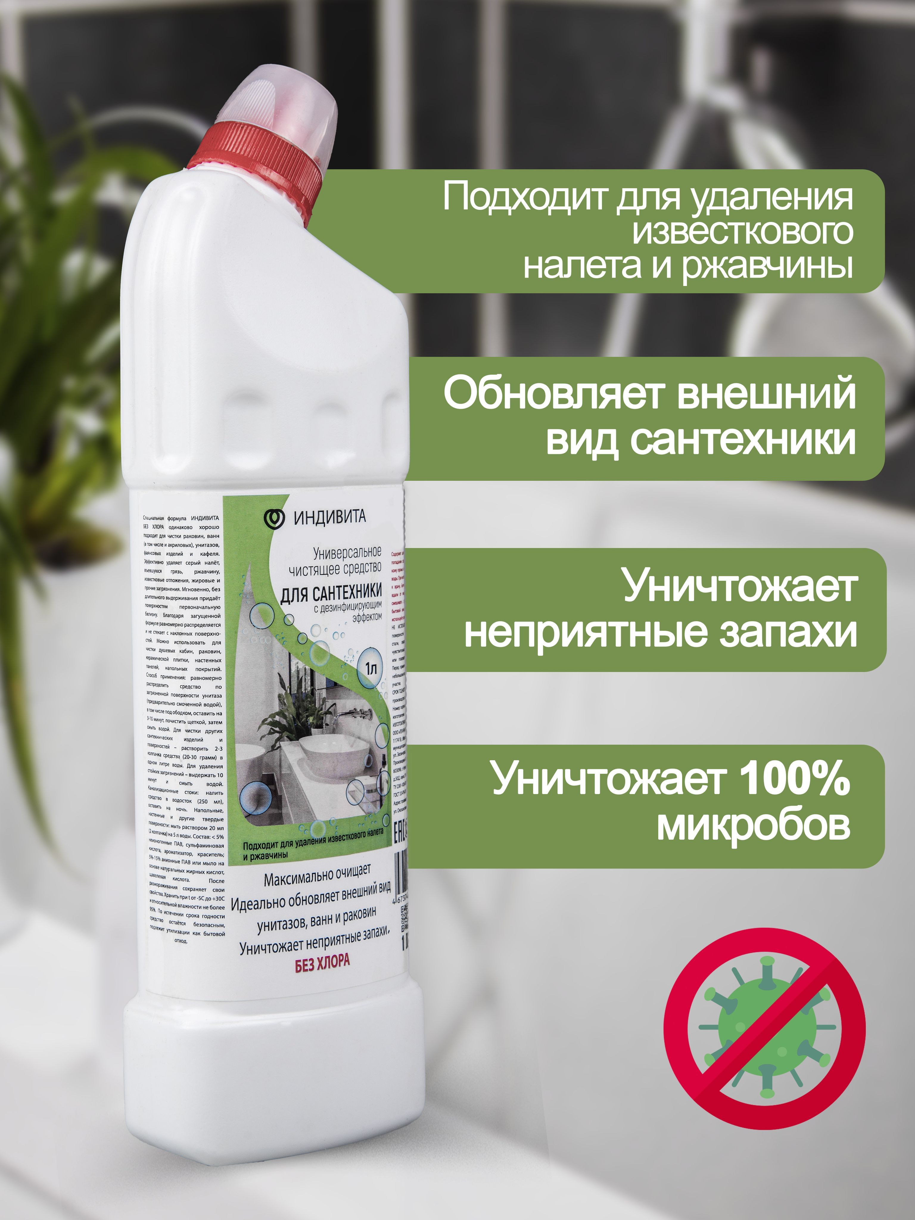 Чистящее средство эко для ванны и туалета универсальное, сантехники, акриловых ванн, очиститель душевых кабин, без хлора с дезинфицирующим эффектом, удаления известкового налета и ржавчины 1Л ИНДИВИТА
