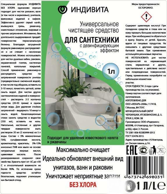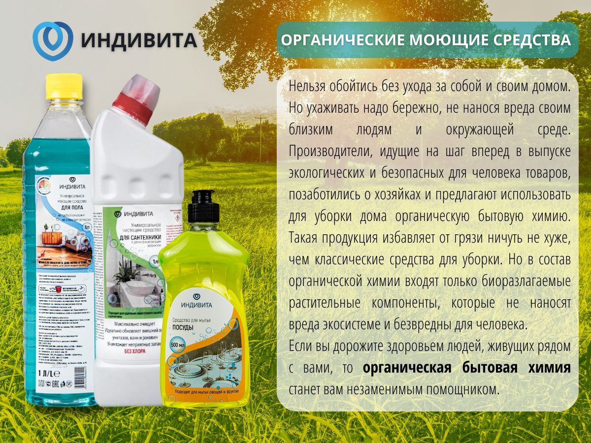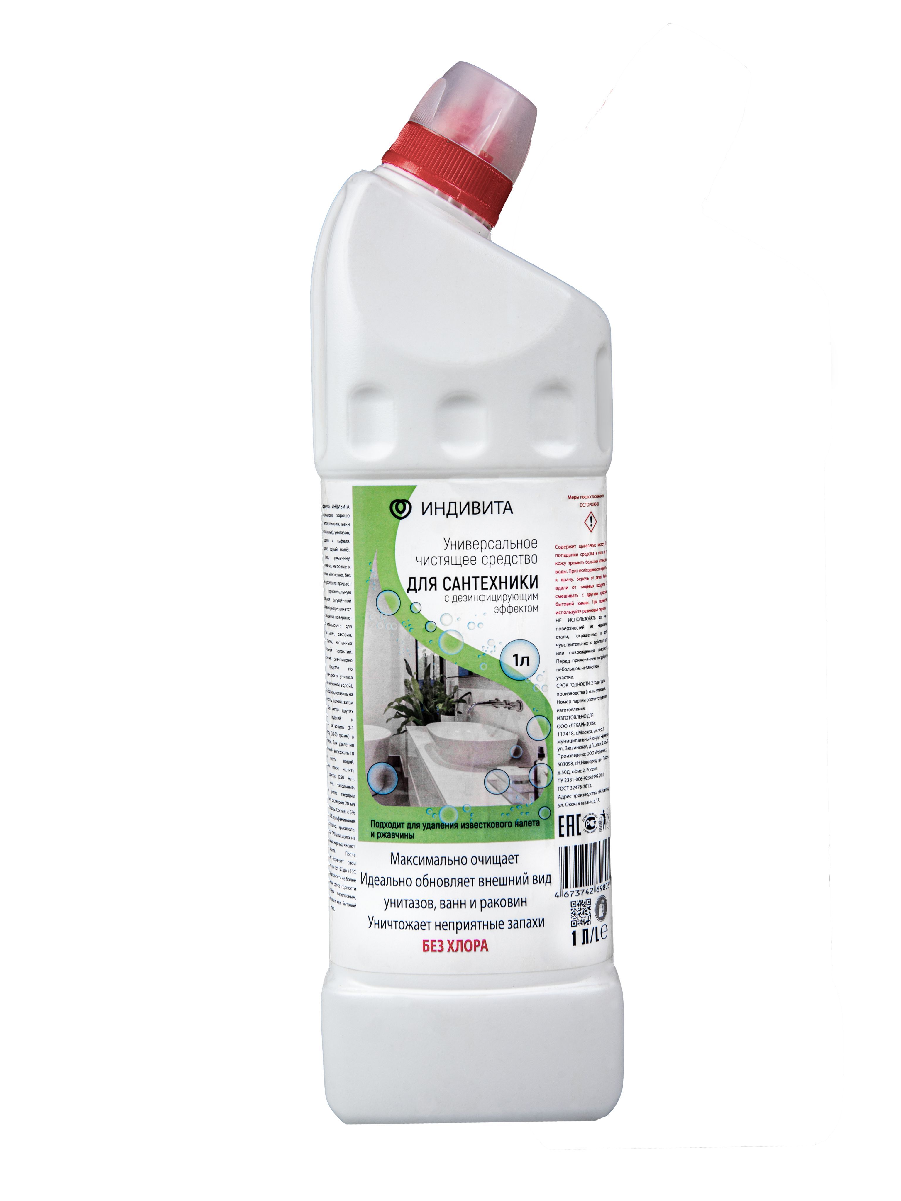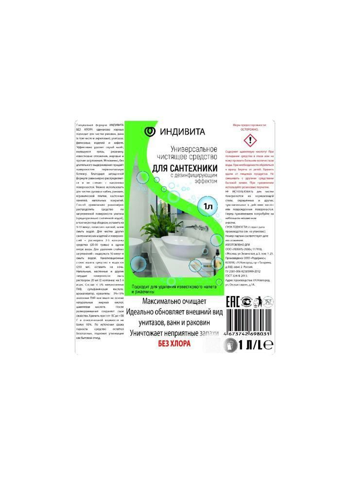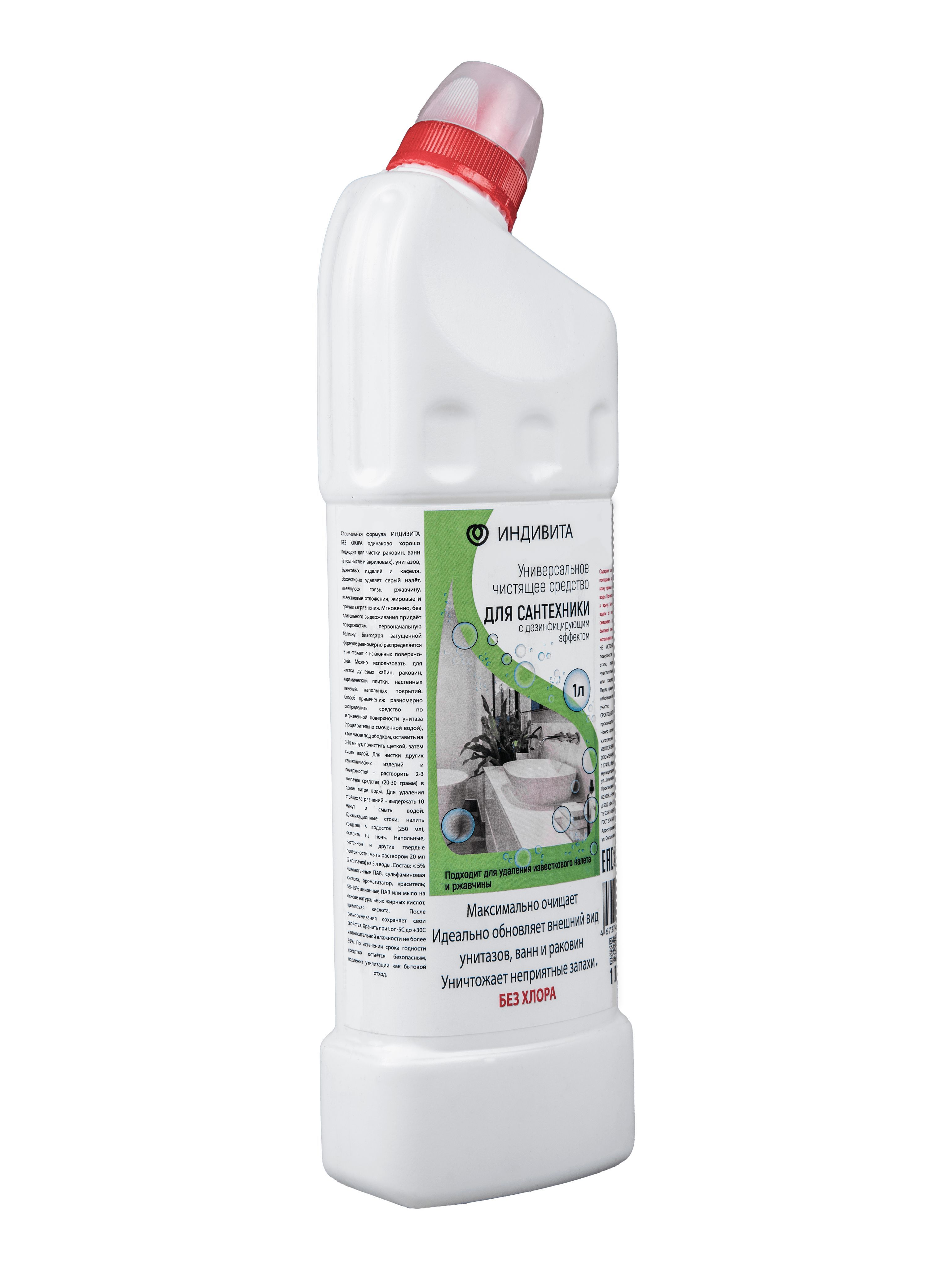 Чистящее средство эко для ванны и туалета универсальное, сантехники, акриловых ванн, очиститель душевых кабин, без хлора с дезинфицирующим эффектом, удаления известкового налета и ржавчины 1Л ИНДИВИТА