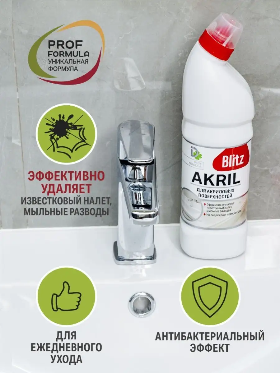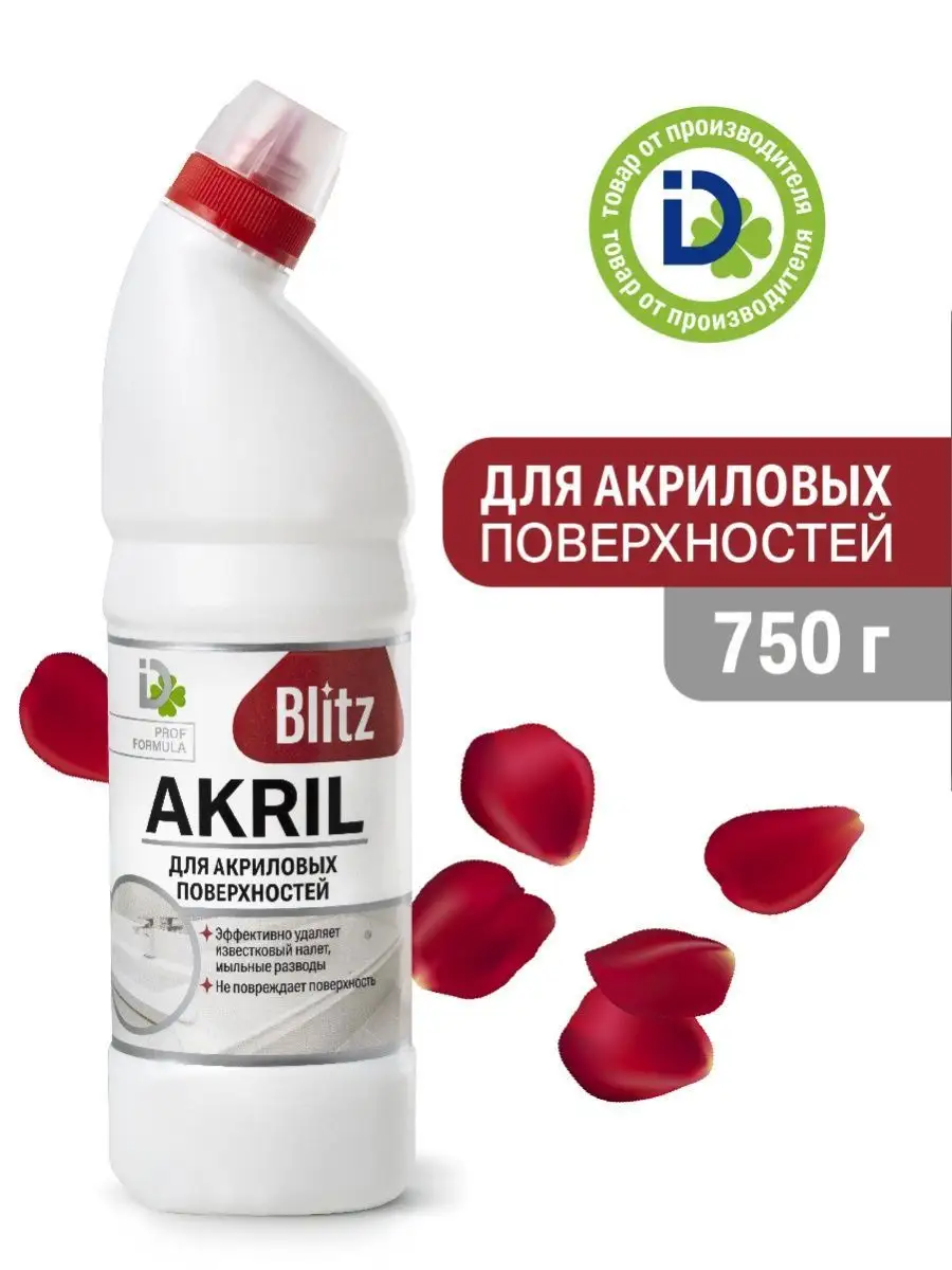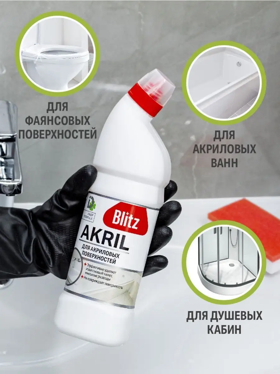 Описание: Вы заметили, как трудно избавиться от накипи и грязи в душевых кабинах? Не знаете, какой продукт лучше всего справится с этой задачей? Представляем Вам гель для уборки душевых кабин - ваш идеальный выбор при уборке ванных комнат! Содержащий в себе мощные очищающие свойства, Blitz AKRIL обладает удивительной способностью разрушать даже самые стойкие загрязнения. Его уникальная формула на основе компонентов обеспечивает быстрое и эффективное решение проблем с грязью. Можно легко и без усилий удалять копоть, отложения и другие мелкие загрязнения и приводить в действие сверкающую и чистую душевую кабину. А компонент в составе очистителя справляется с бактериями и грибками, которые порой могут быть невидимыми, но могут стать опасностью для вашего здоровья, антибактериальная защита не оставит им шанса. Кроме того, гель безопасен для мытья пластика, стеклокерамики, эмалированной, фаянсовой и нержавеющей поверхности. В отличие от других агрессивных продуктов очистки, которые могут повредить поверхность и окружающую среду, этот спрей позволяет сохранять ваше здоровье и здоровье окружающих. В упаковке вас ждет 750 миллилитров, которого хватит на множество уборок. Даже самая запущенная душевая кабина будет выглядеть как новая после применения данного состава . Не медлите и приобретайте для уборки душевых кабин уже сегодня! Этот универсальный и эффективный продукт станет незаменимым помощником для любого владельца ванных комнат. Доверьтесь нам - здесь вы найдете самое лучшее средство для уборки душевых кабин, и мы уверены, что вы останетесь довольны результатами ! Способ применения: равномерно нанести жидкость для уборки, оставить удалитель загрязнений на 5-10 минут, потереть губкой или щеткой, смыть водой. На страничке бренда BLITZ представлена вся универсальная бытовая химия для дома и хозяйственные товары для профессиональной обработки общественных зон.